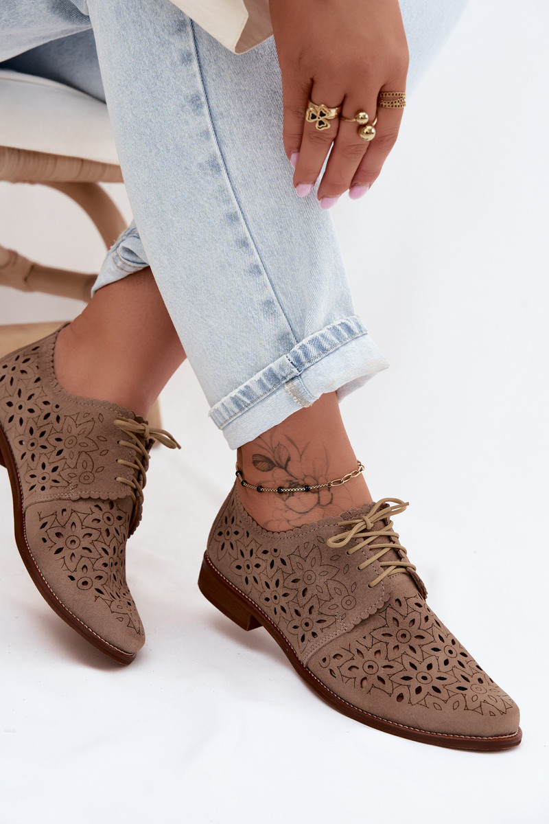 Haut aus INildleder Schuhe Feminin mit durchbrochenen Elementen mit breiten Absätzen Zazoo 4156 Cappuccino-Farbe
