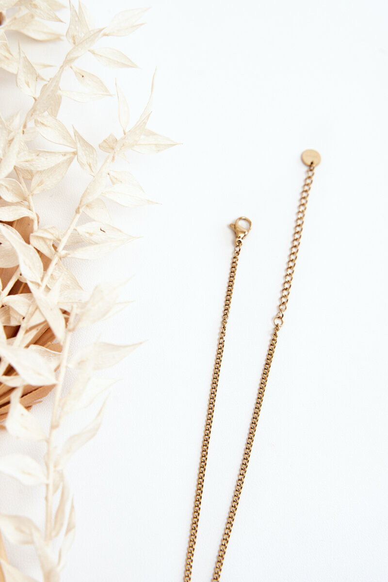 Damenkette mit Rüstung und schwarzen Blumen in Goldfarbe