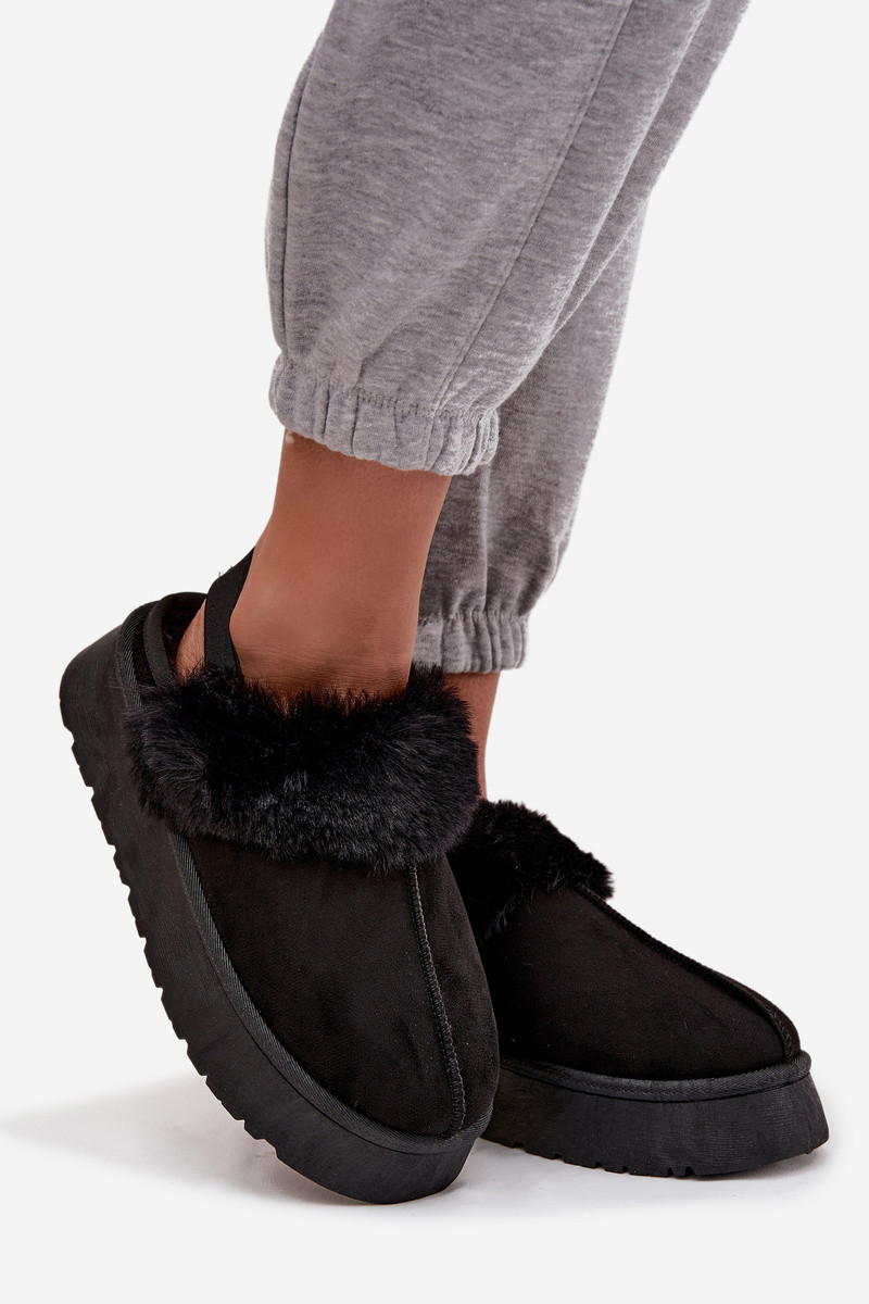 Hausschuhe Feminin mit einer Plattform mit Pelzmantel schZuarze Farbe Linaris