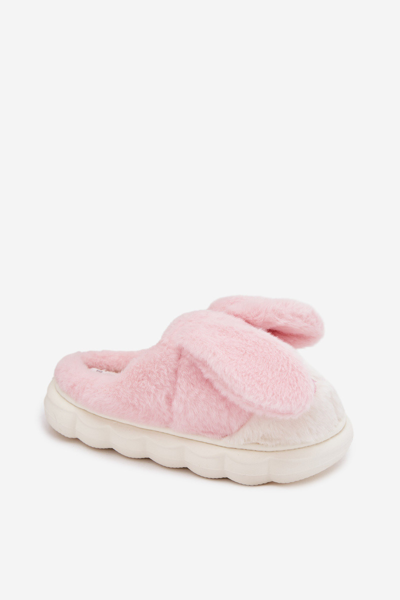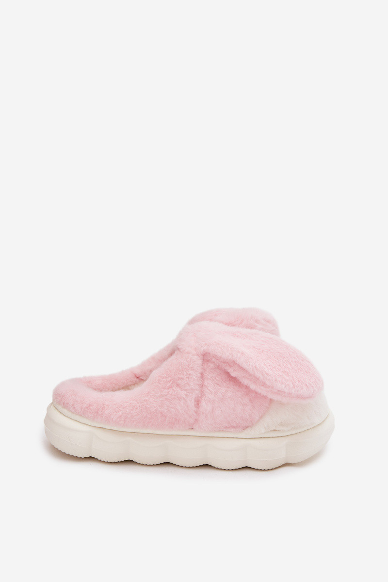 Rosa Damen-Hausschuhe mit Fell und Hasen Faylen