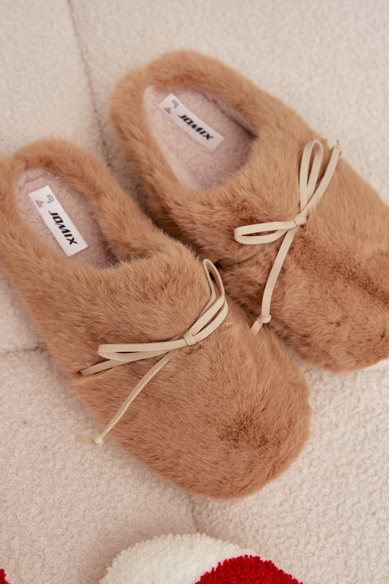 Rote Minella Hausschuhe mit Fell und Schleifen