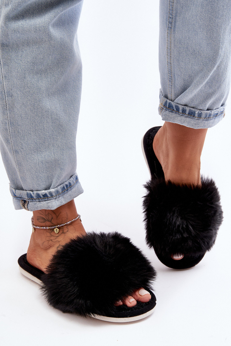 Hausschuhe Feminin mit Pelzmantel schZuarze Farbe Vienitta