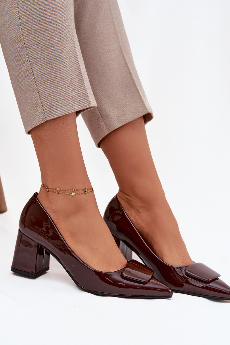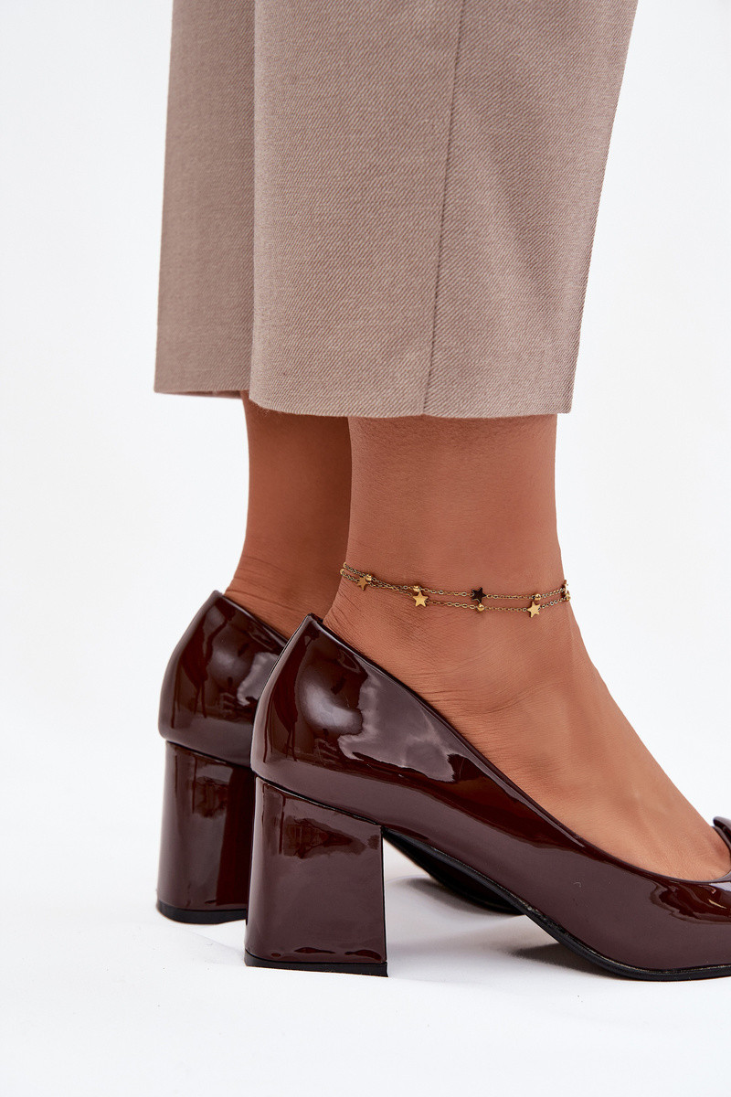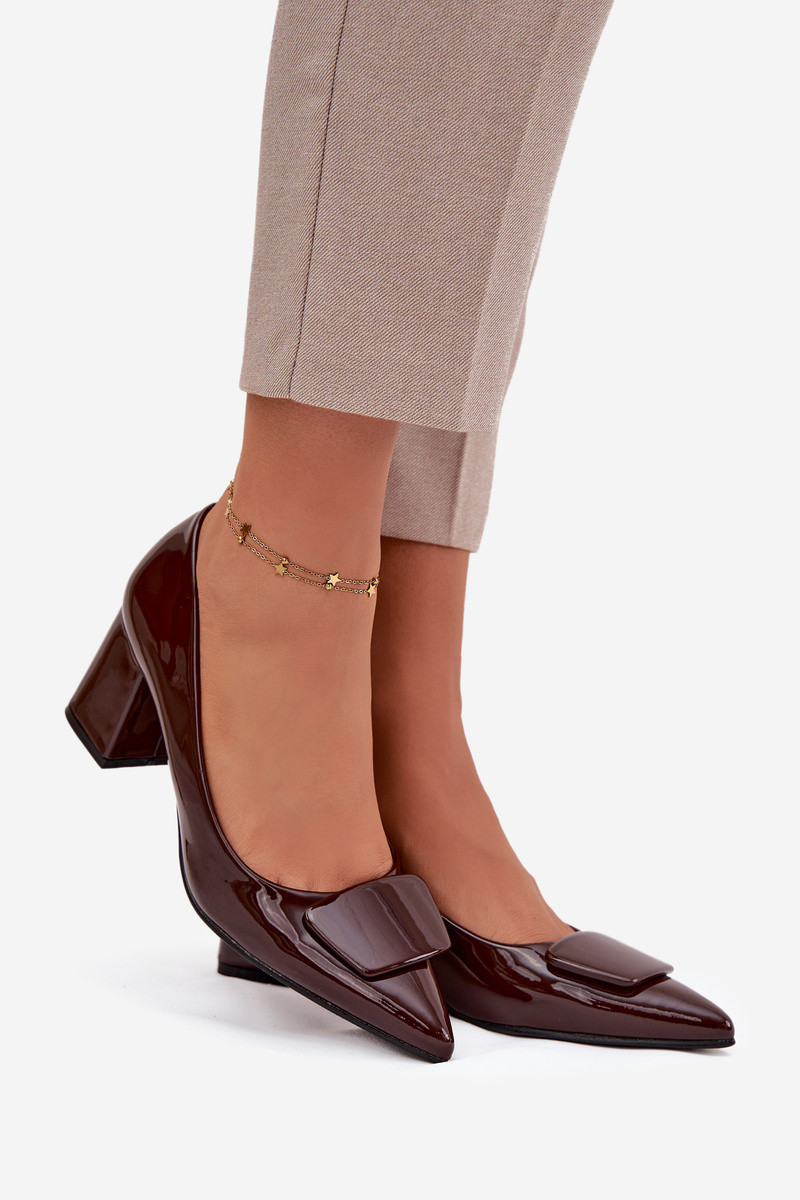 Lackschuhe mit Absatz und Ornamenten, schokoladenfarben Isoline