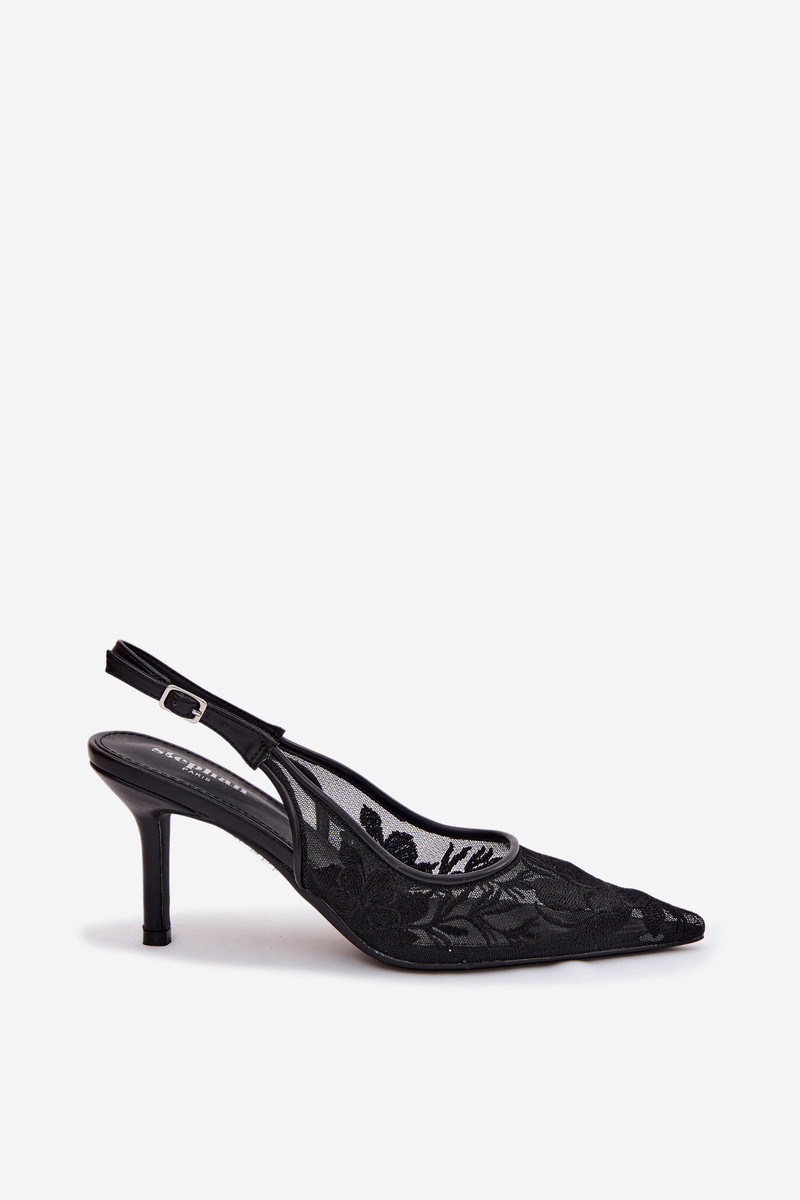 mit Spitzenmotiven Netz Sandalen mit dünnen Absätzen schZuarze Farbe Es mussvia