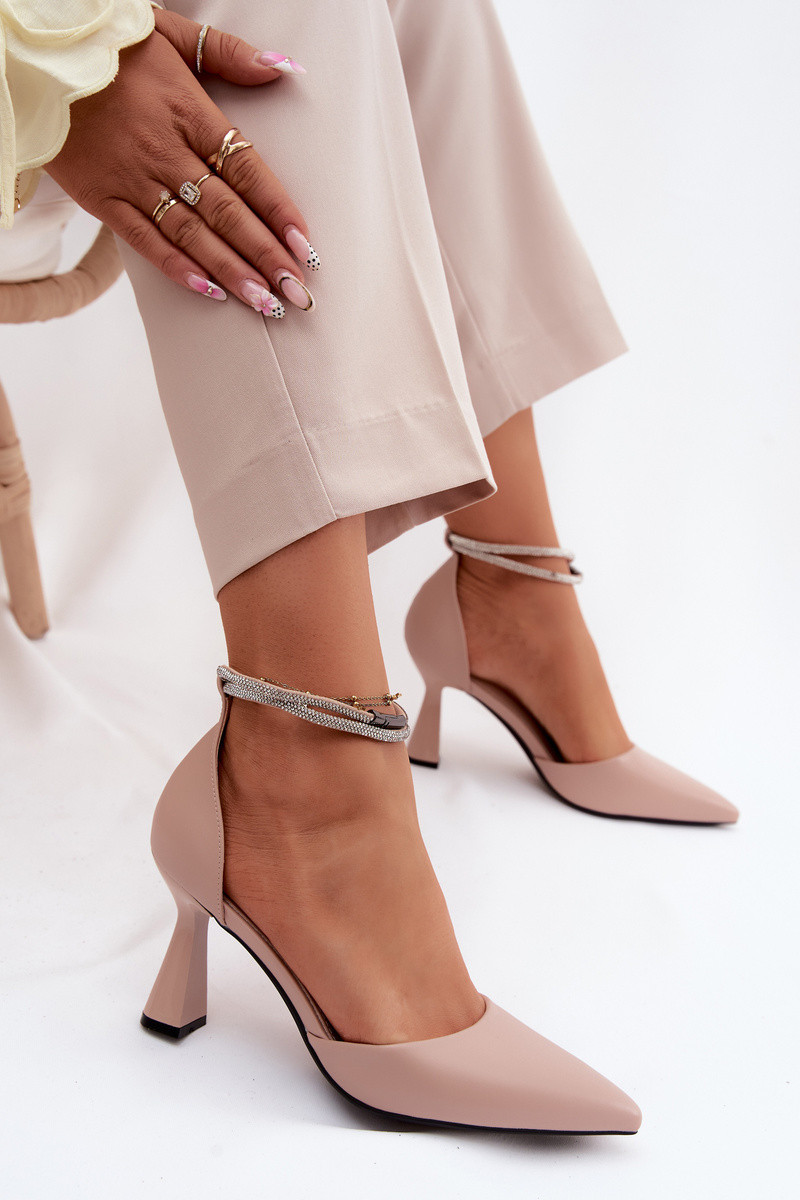 Beige High Heels mit glänzenden Riemen Vinceza 62283