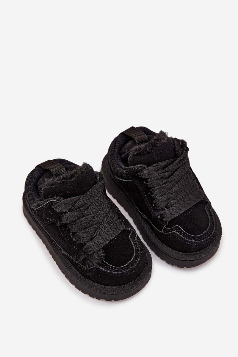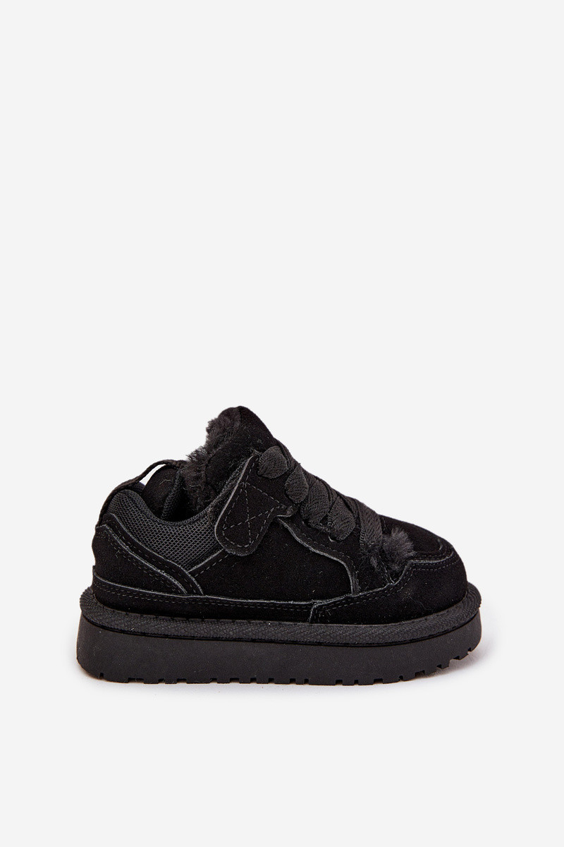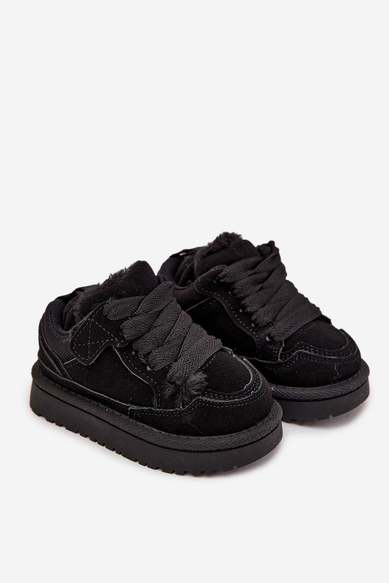Schwarze warme Kinder Sportschuhe mit Fellfutter Mireen