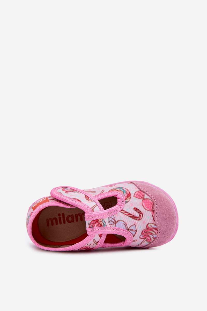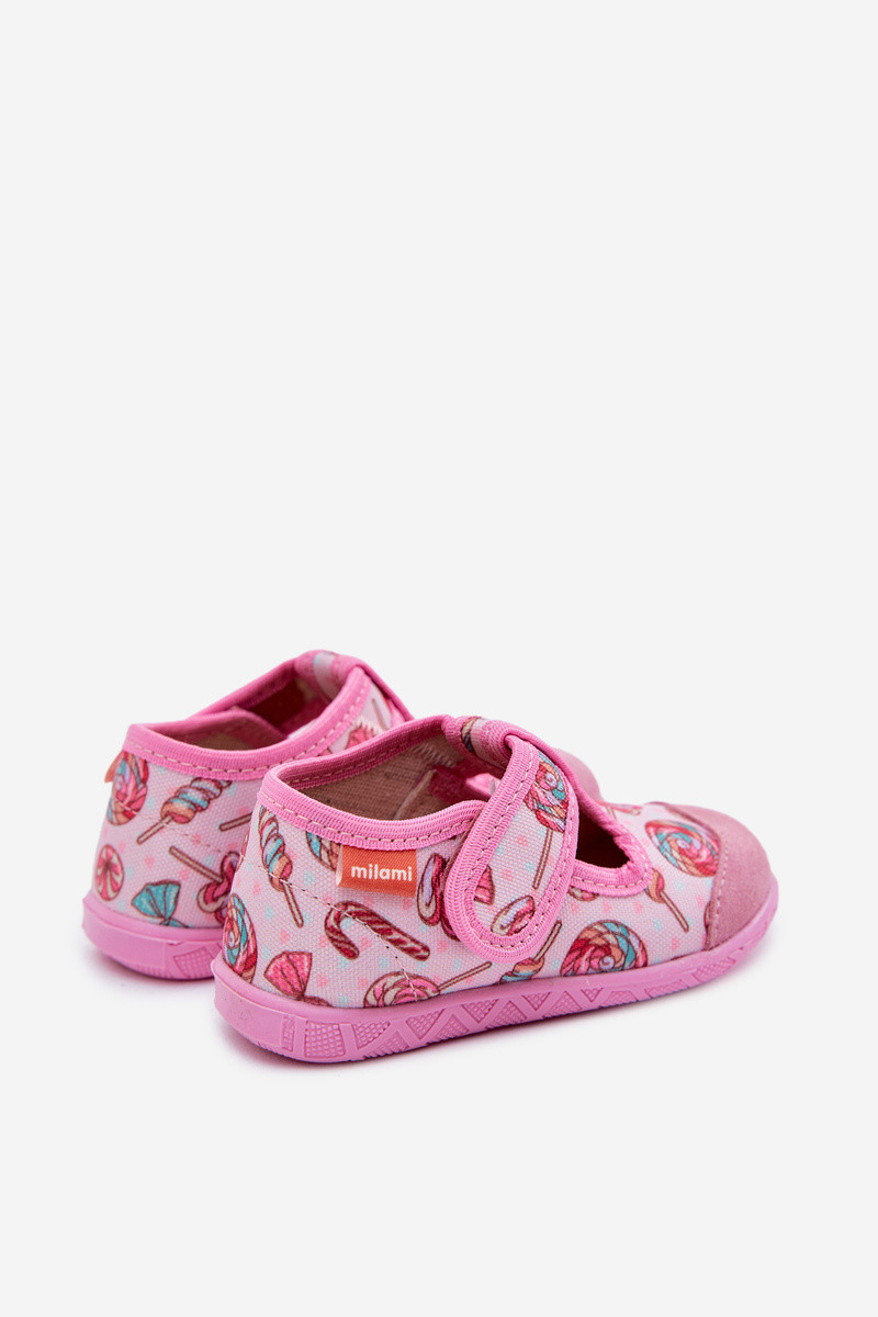 Milami Slipper für Kinder mit Klettverschluss und Lutschermuster in rosa Jasimrra