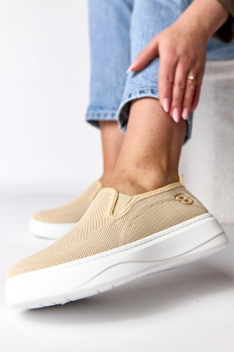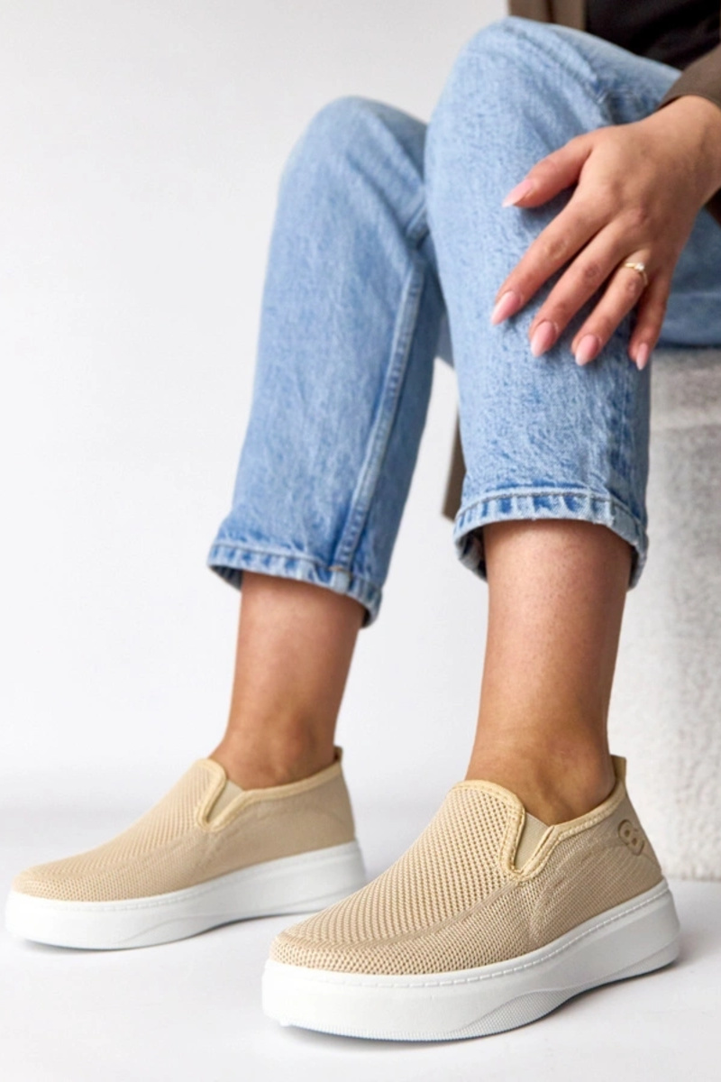 Sandfarbene textile Sport-Sneaker auf Plattform Céleste