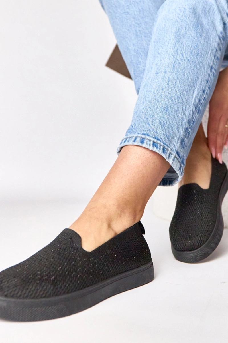 Schwarze textile Slip-On Sneakers mit Zirkonia Gabrielle