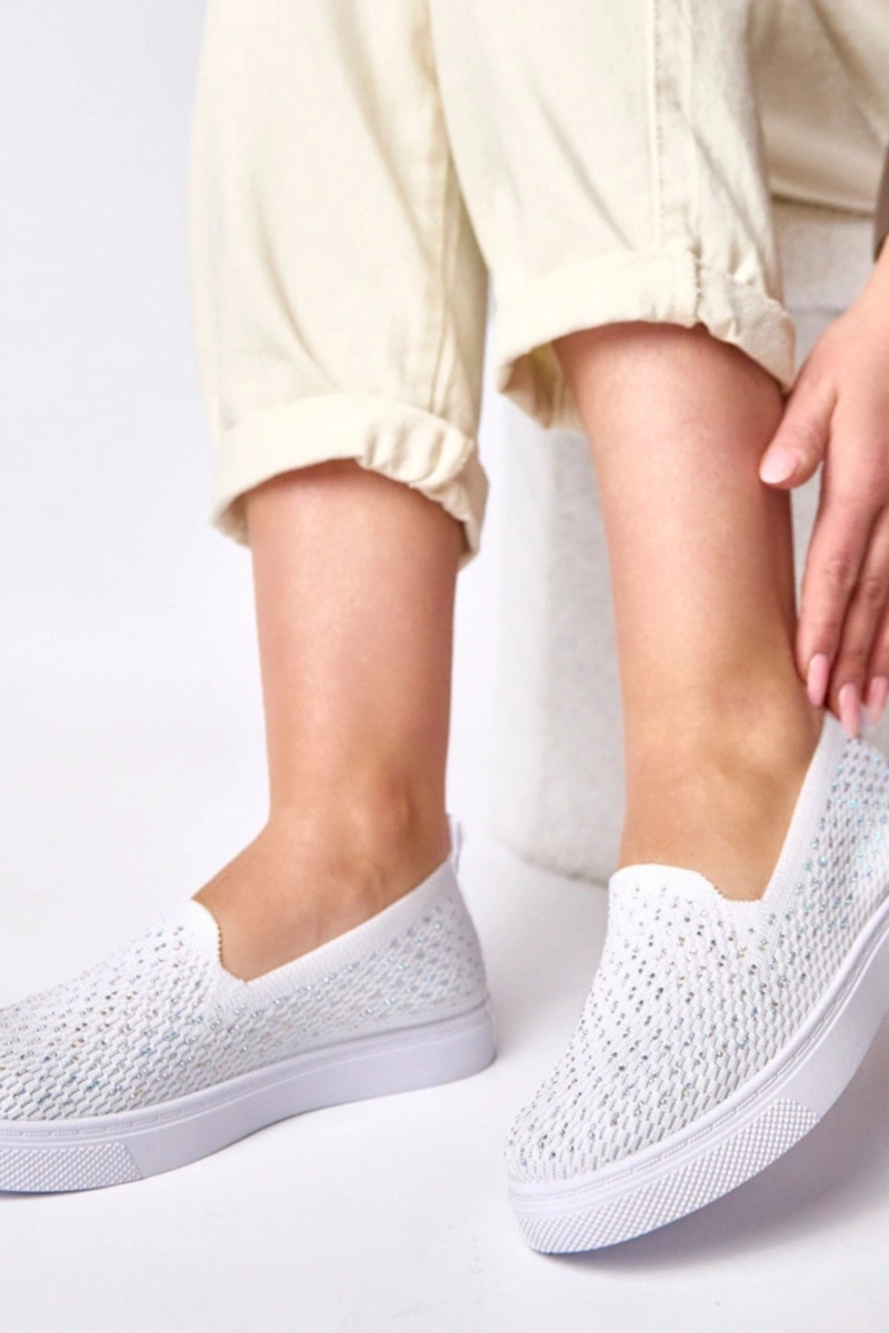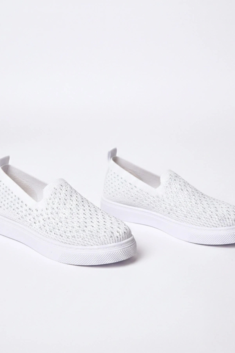 Weiße textile Slip-On Sportschuhe mit Zirkonia Gabrielle