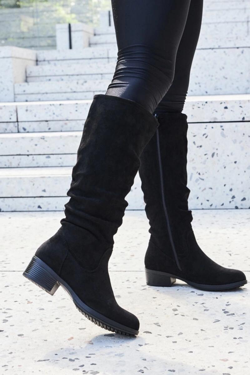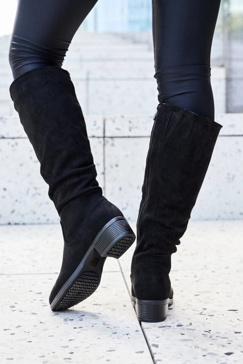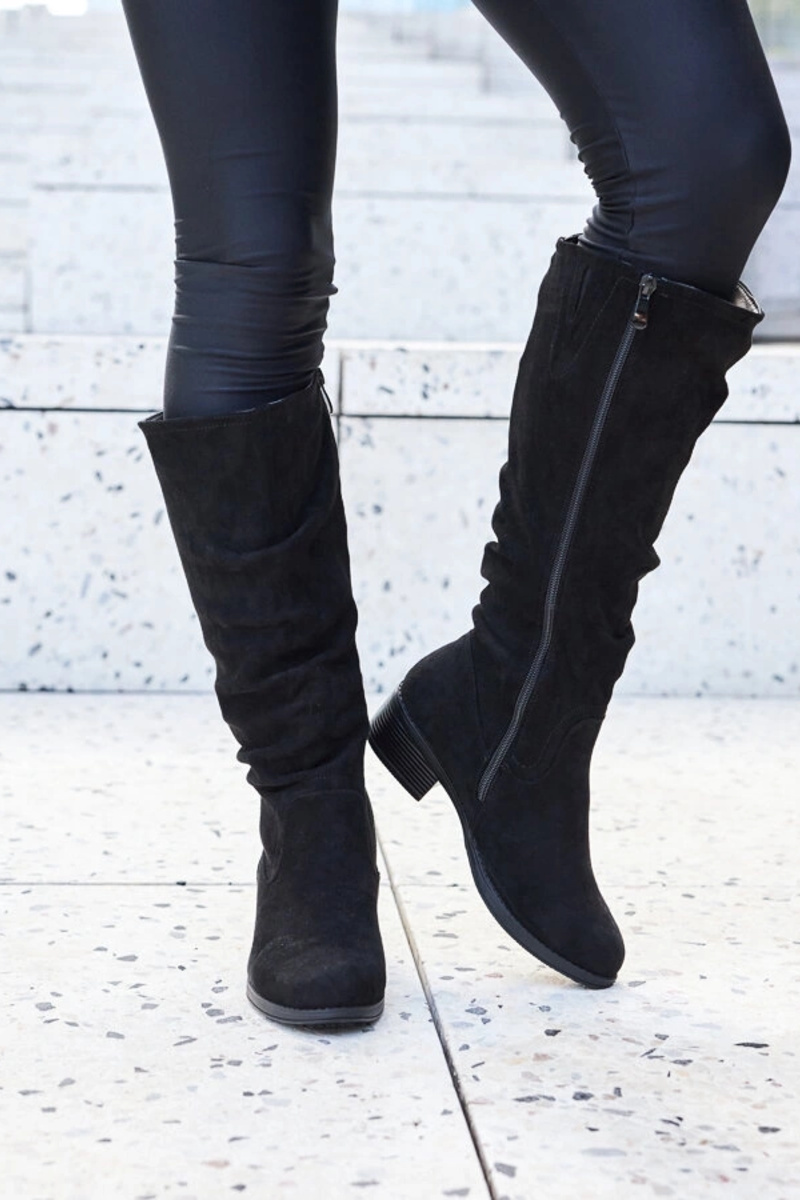 Schwarze gefütterte Stiefeletten aus Kunstwildleder Angelico
