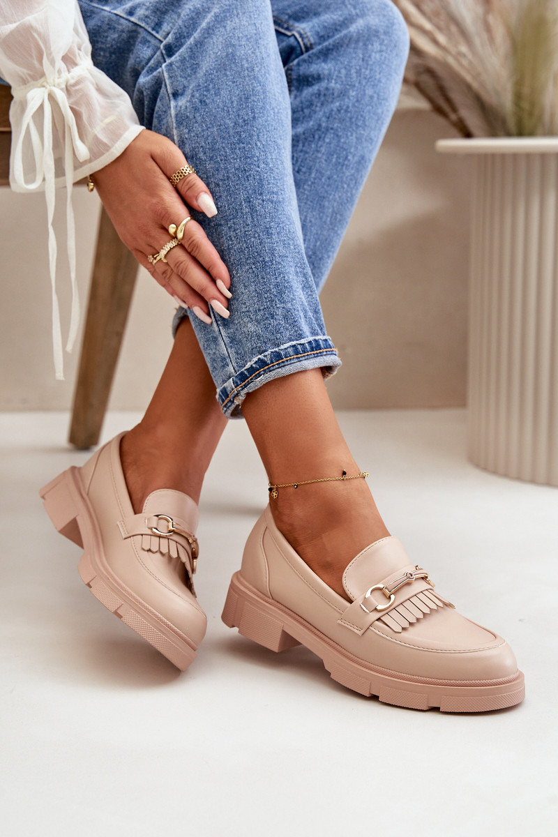 Damen Mokassins mit Ornamenten aus Kunstleder in sandfarben Tialorae