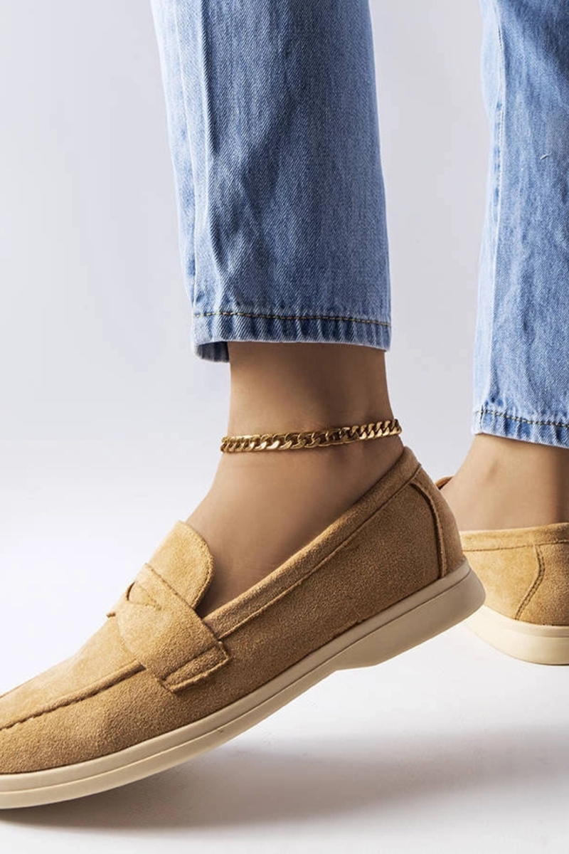 Sandfarbene Kunstvelours-Balletschuhe Ferragus