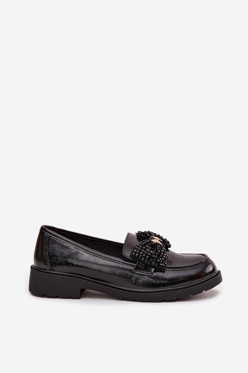 Lackierte Mokassins für Damen mit Schleifen S.Barski HY52-319A in Schwarz