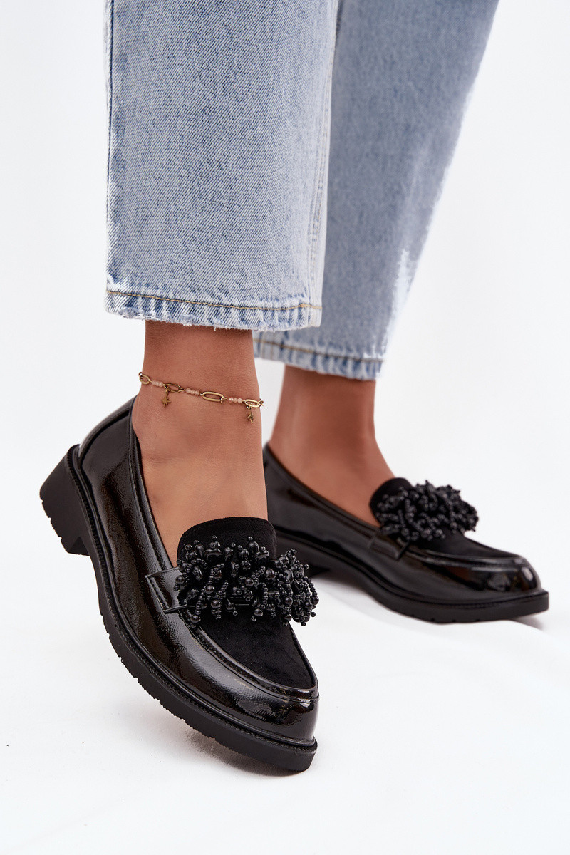 Damenmokassins mit Lackeffekt S.Barski HY52-369B in Schwarz