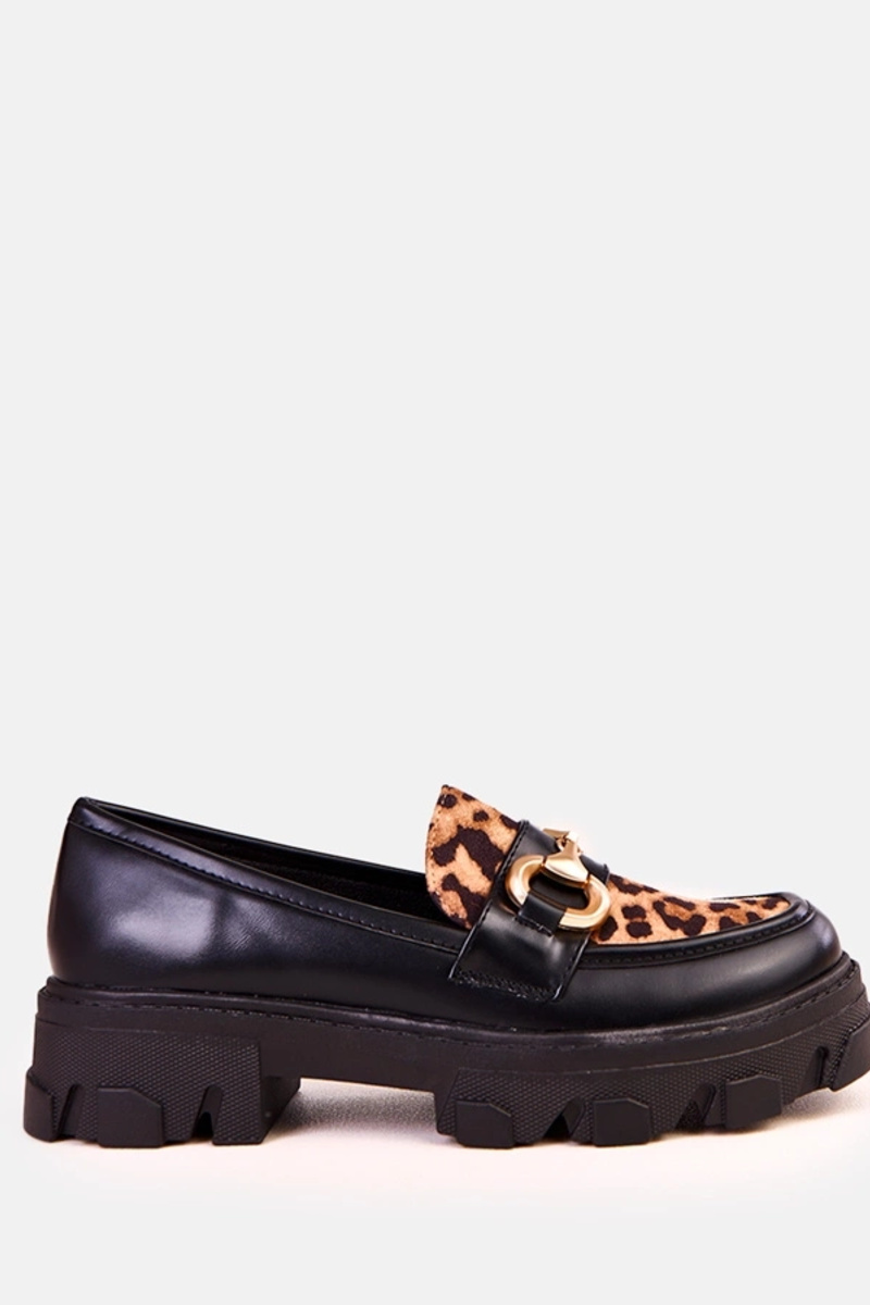 Schwarze Mokassins mit Leopardenmuster und goldener Verzierung Ruben