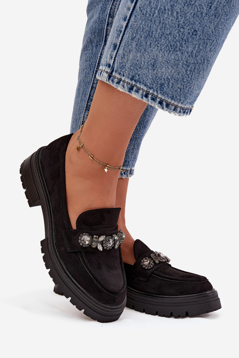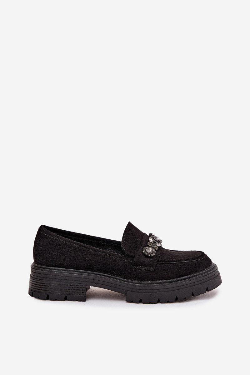 Damen-Mokassins mit glänzenden Ösen aus Kunstvelours in Schwarz Lavisse