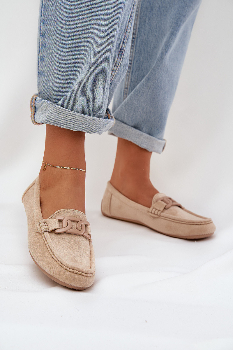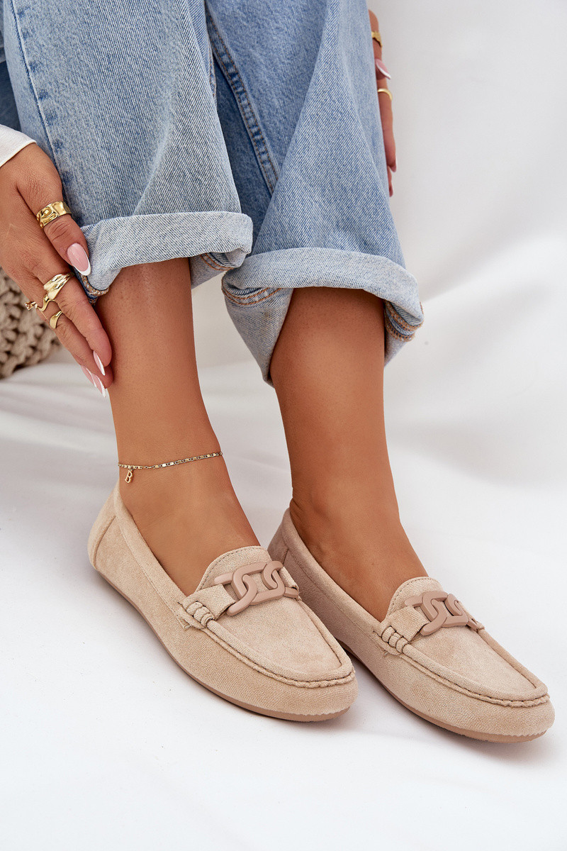 Damen Mokassins aus Kunstwildleder mit Ornamenten sandfarbene Farbe Seathra