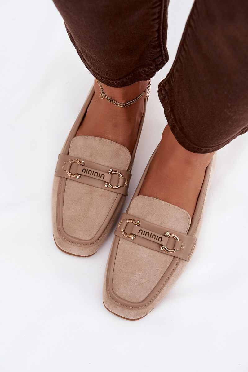 Damen sandfarbene Mokassins mit dekorativen Elementen „Evelora"