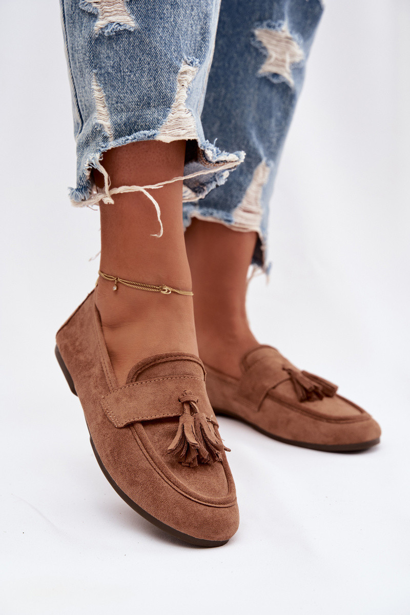Damen braune Mokassins mit Fransen Tai turirilisse