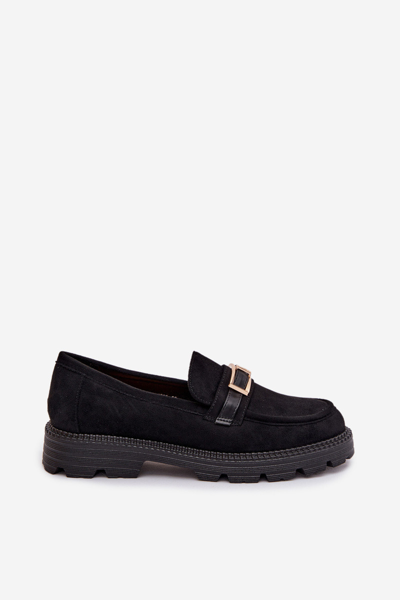 Mirelva Damen Mokassins mit goldfarbenen Schnallen in Schwarz