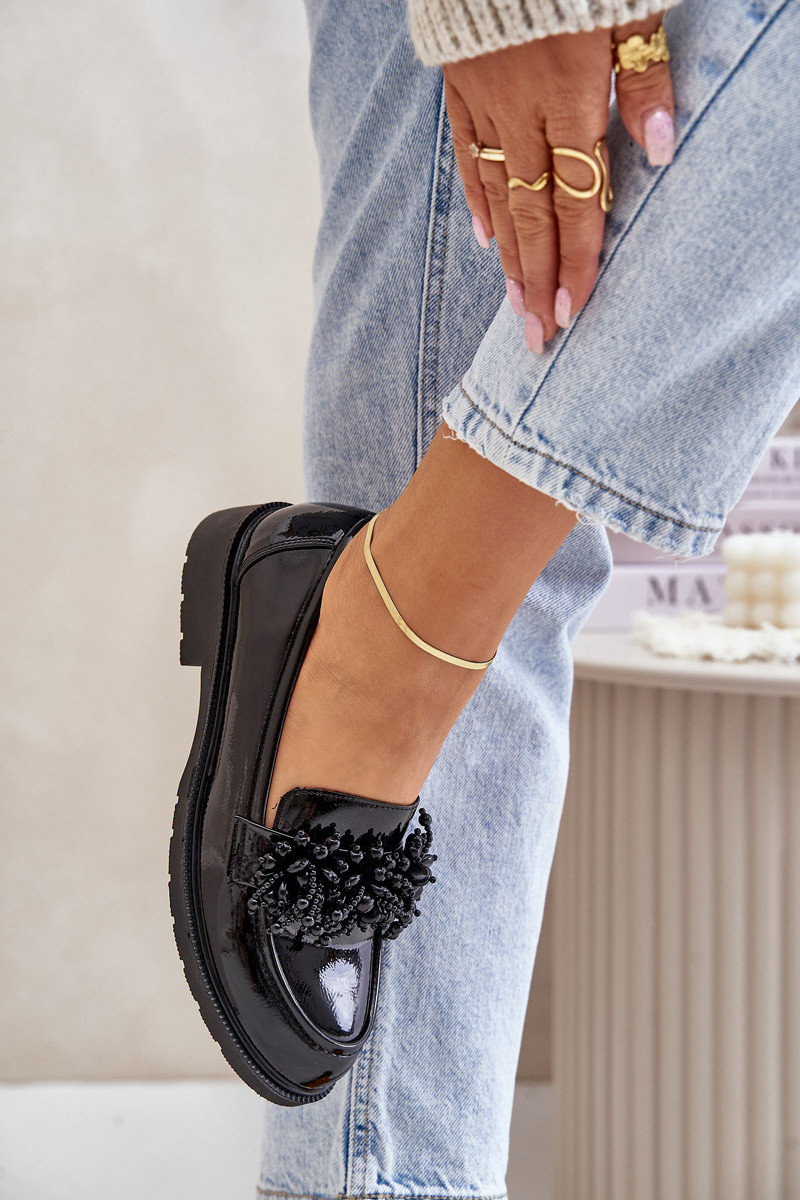 Feminin Mokassins mit Lackeffekt S.Barski HY369A schZuarze Farbe