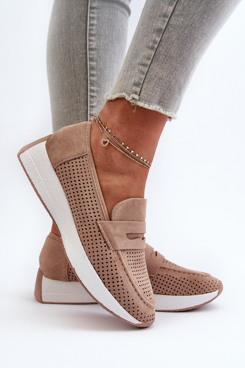 Damen Mokassins mit Plateau aus Kunstwildleder in Sandfarbe Inesqua