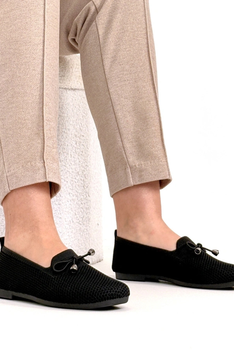 Schwarze Stoff-Mokassins mit Schleife Aubrey