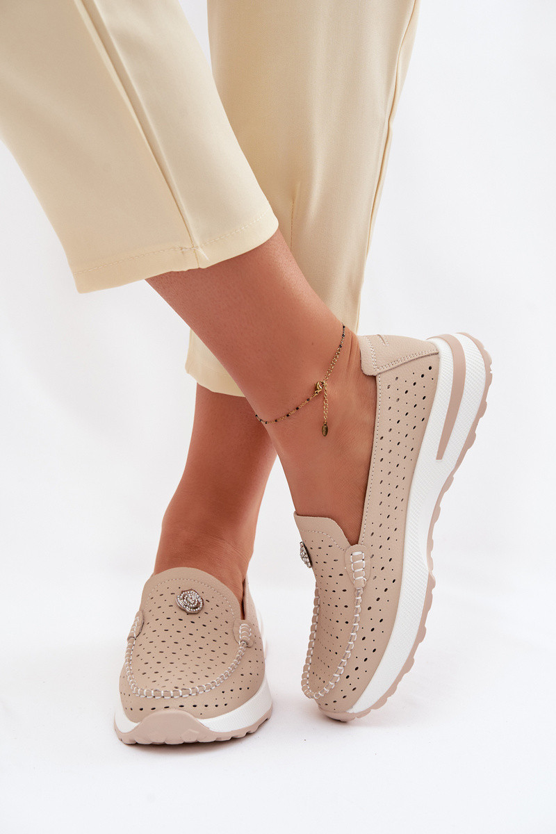 Damen-Ausschnitt-Leder-Mokassins Kemela sandfarben