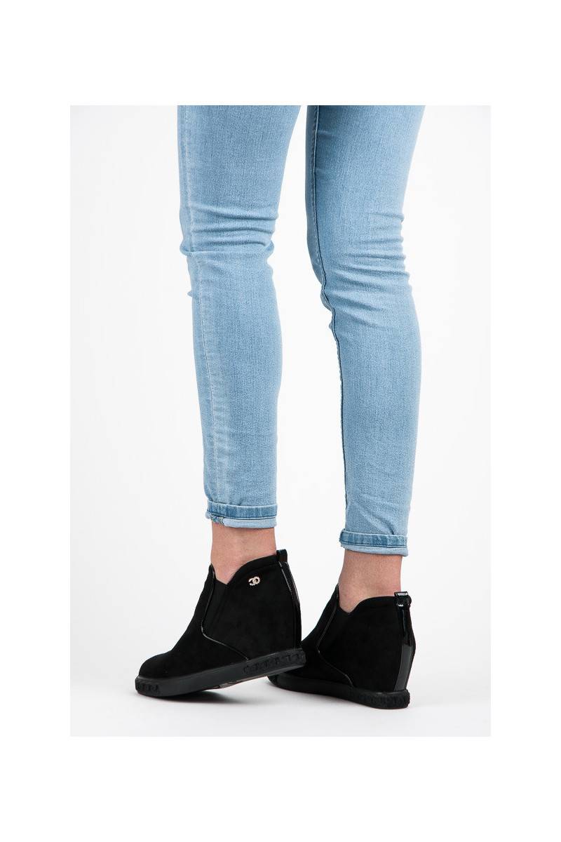 Schwarze Slip-On-Schuhe aus Wildleder mit versteckter Plattform 1236-18B