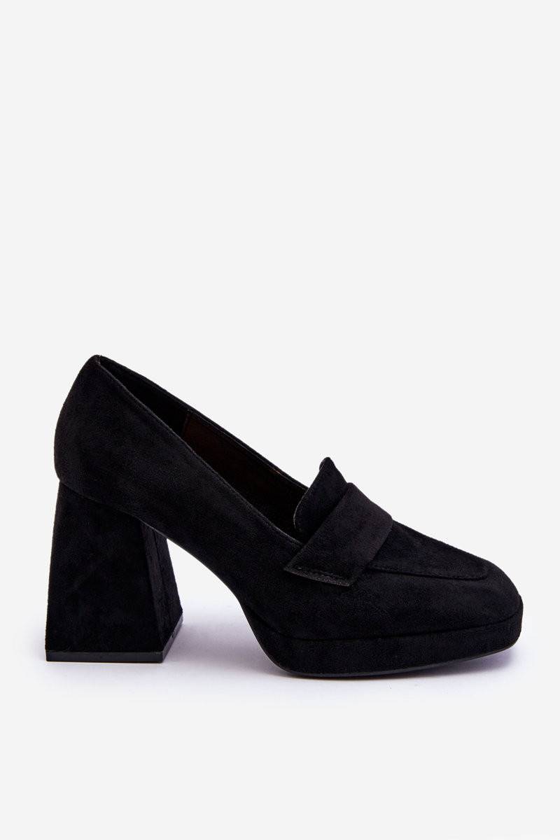 Schwarze Schuhe mit breitem Absatz und Plateau Adriel aus Wildleder