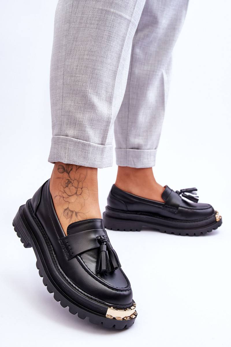 Mokassins mit Fransen in der Farbe Schwarz Lonisa