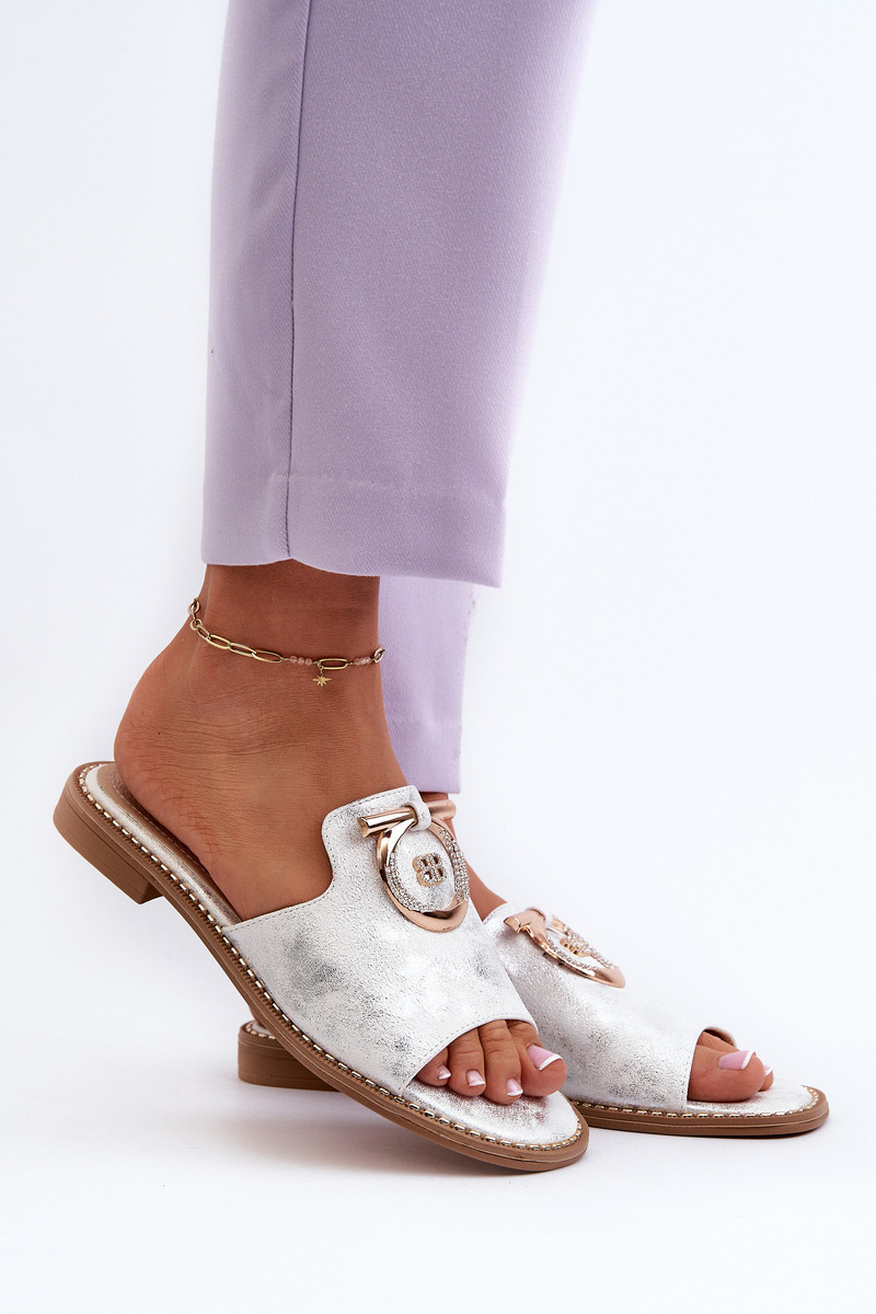 Eleganter Stil mit Glanz Damen-Slipper mit Ornamenten in Silber S.Barski
