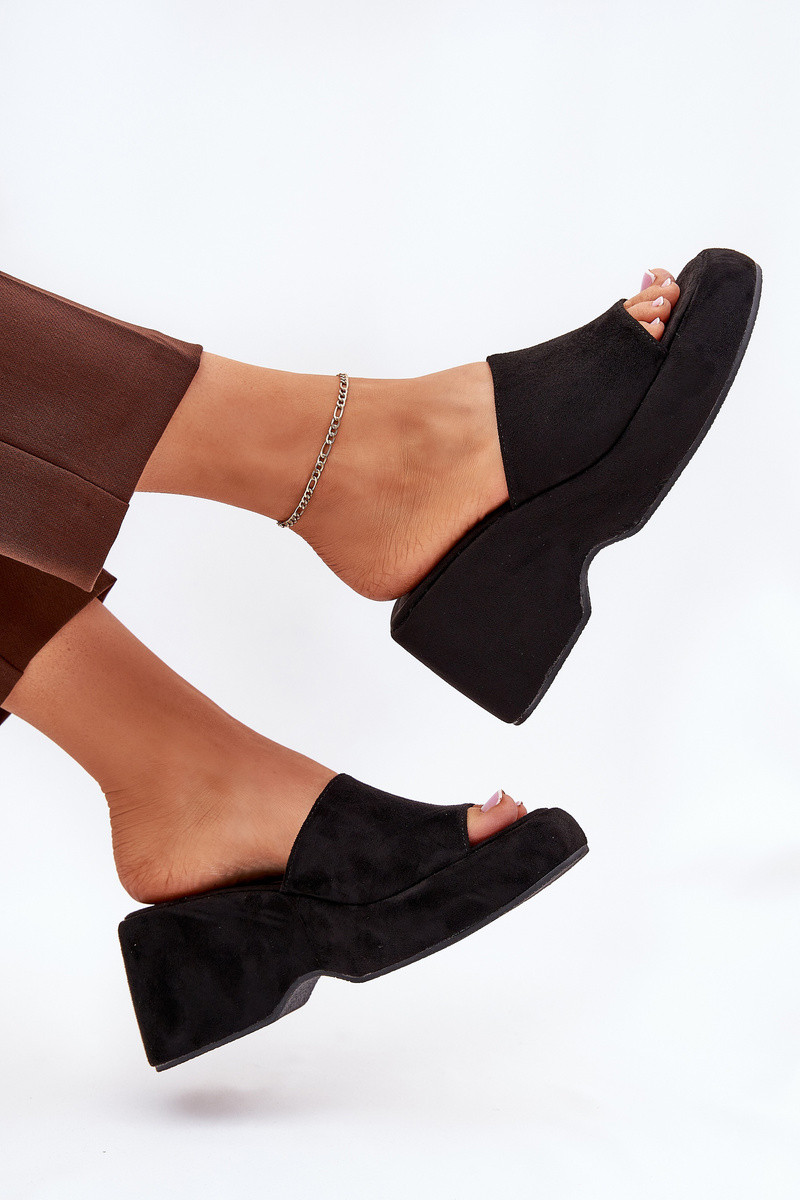 Damen Plateau-Pantoletten aus Kunstvelours in Schwarz Afisal