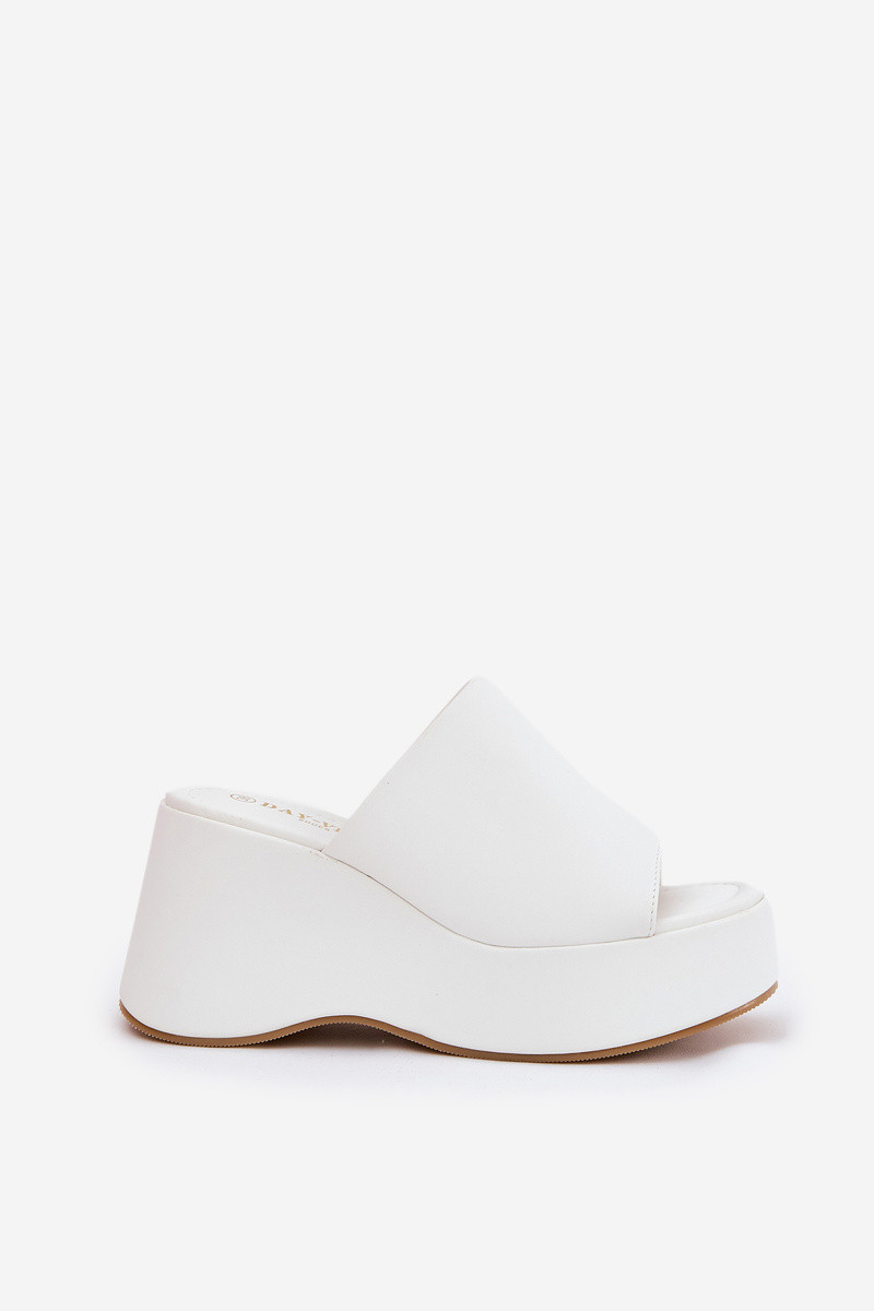 Damen-Pantoletten aus Kunstleder mit Plateau in Weiß