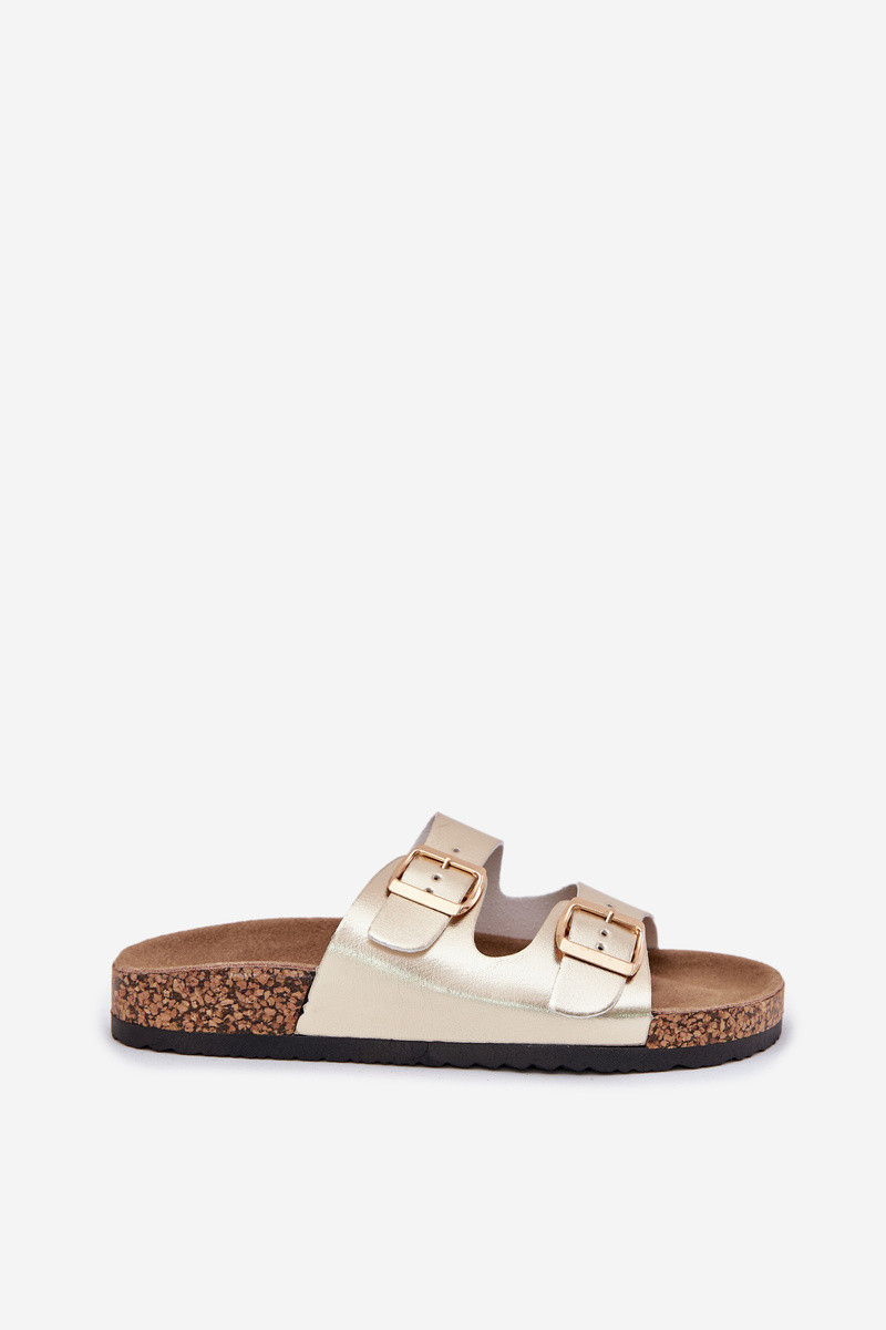 Damen Pantoletten mit Schnallen aus goldfarbenem Kunstleder Iskira
