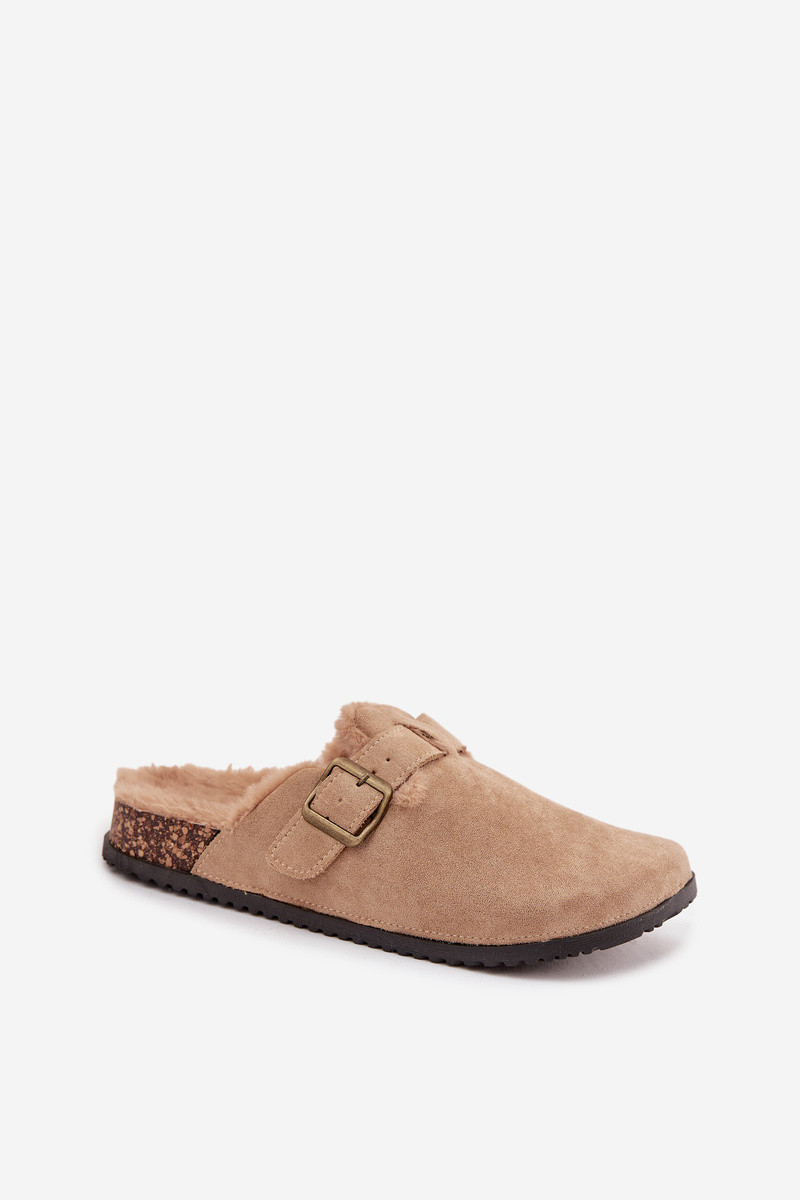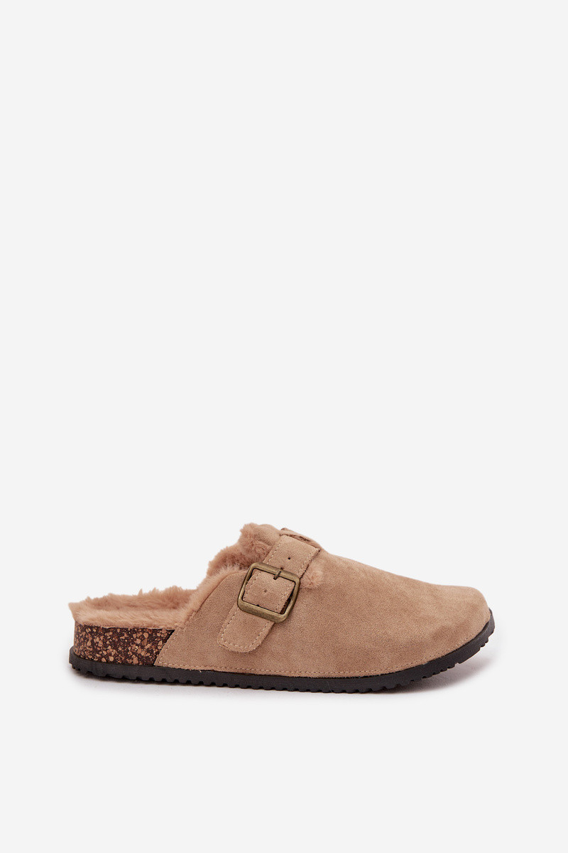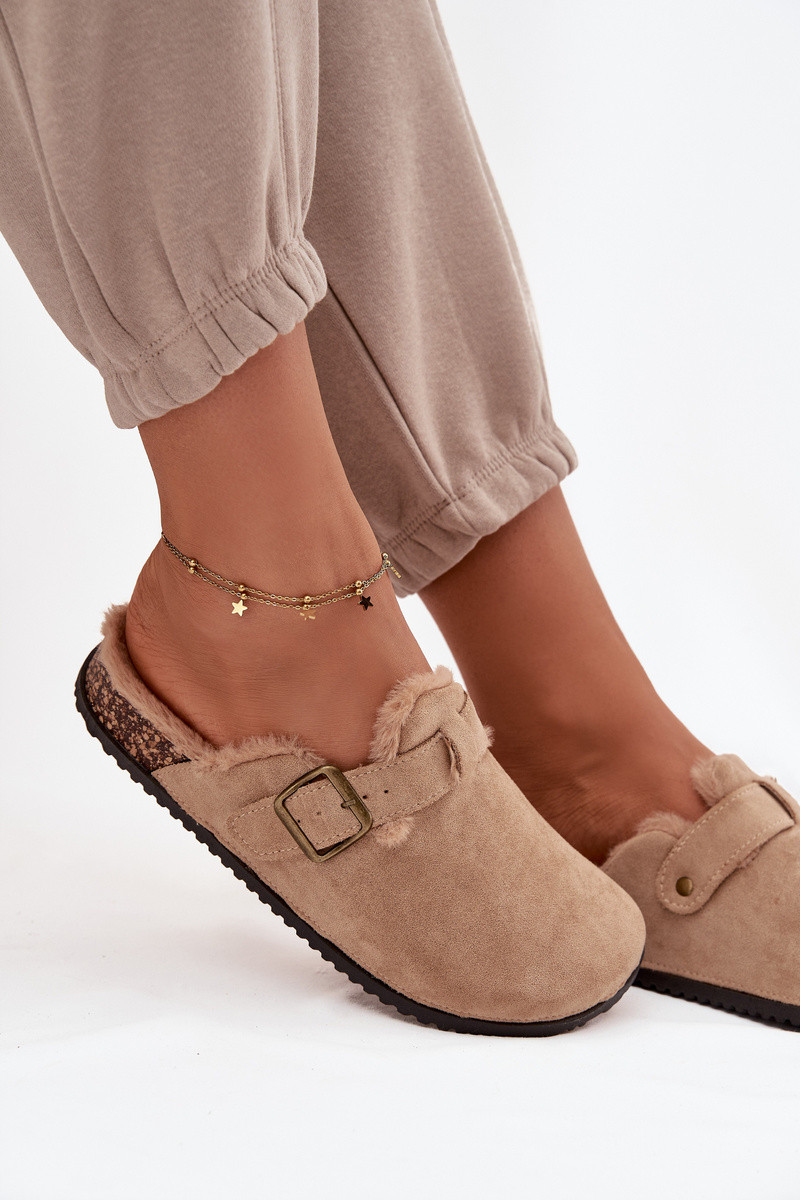 Damenpantoletten mit Futter aus Fell und Schnallen, in sandfarbener Farbe Sylisse