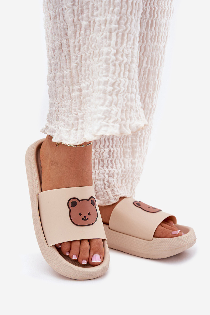 Damen Schaumstoff-Pantoletten mit Teddybär in Sandfarbe Lalon