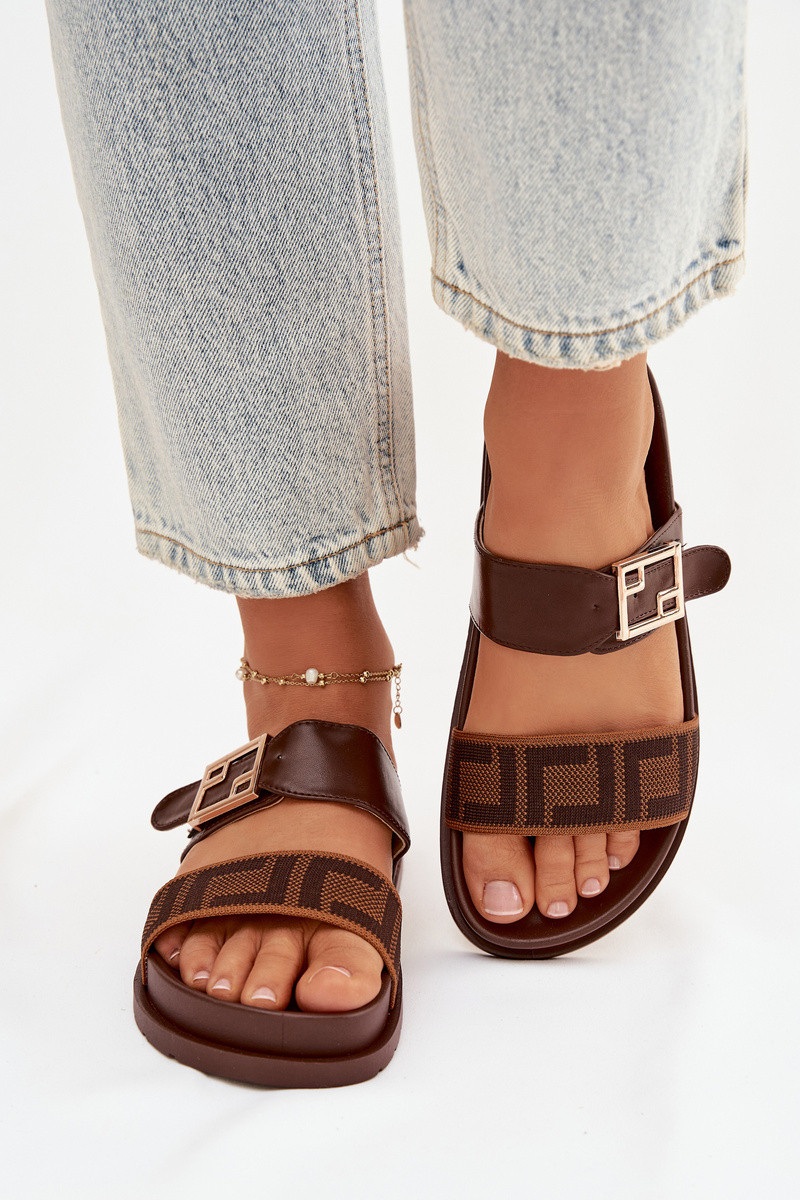 Damenpantoletten mit goldenen Schnallen, braun