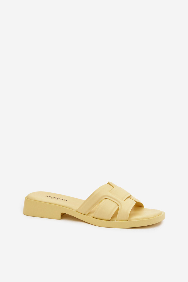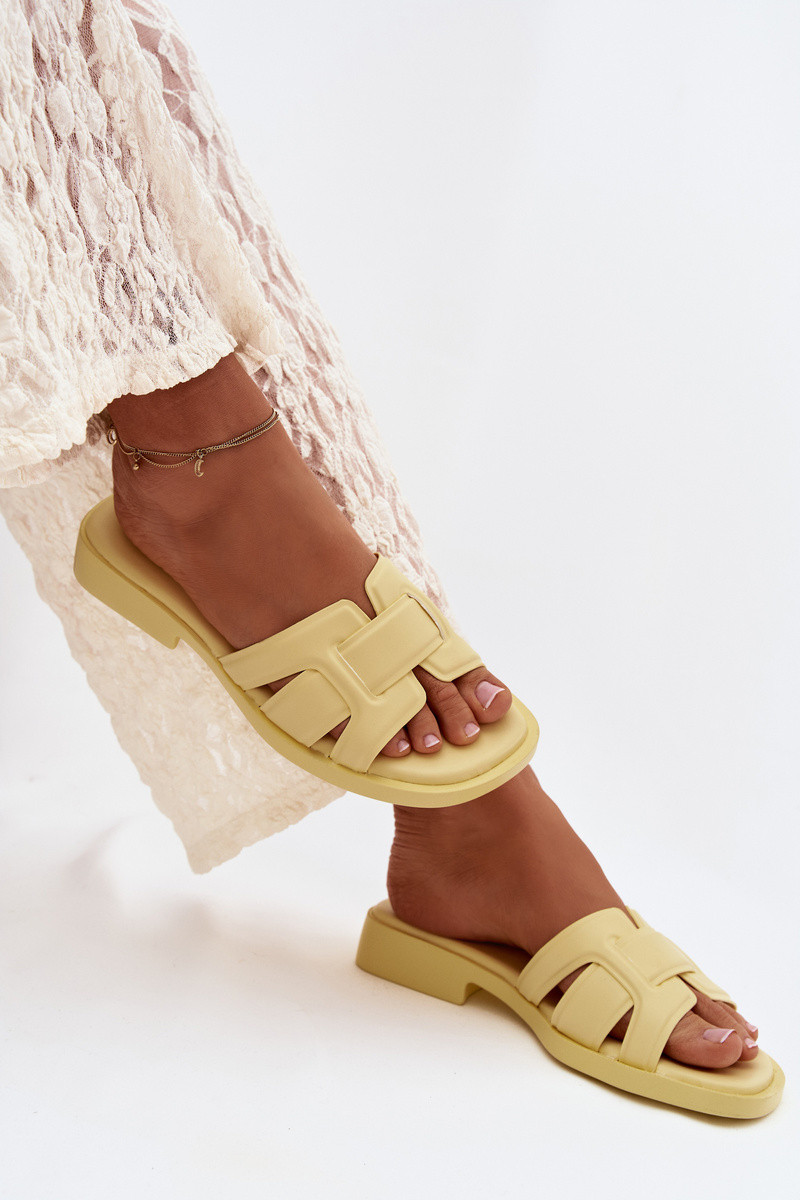 Damenhausschuhe mit breiten Absätzen gelbe Farbe Lorania