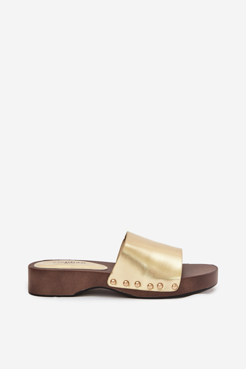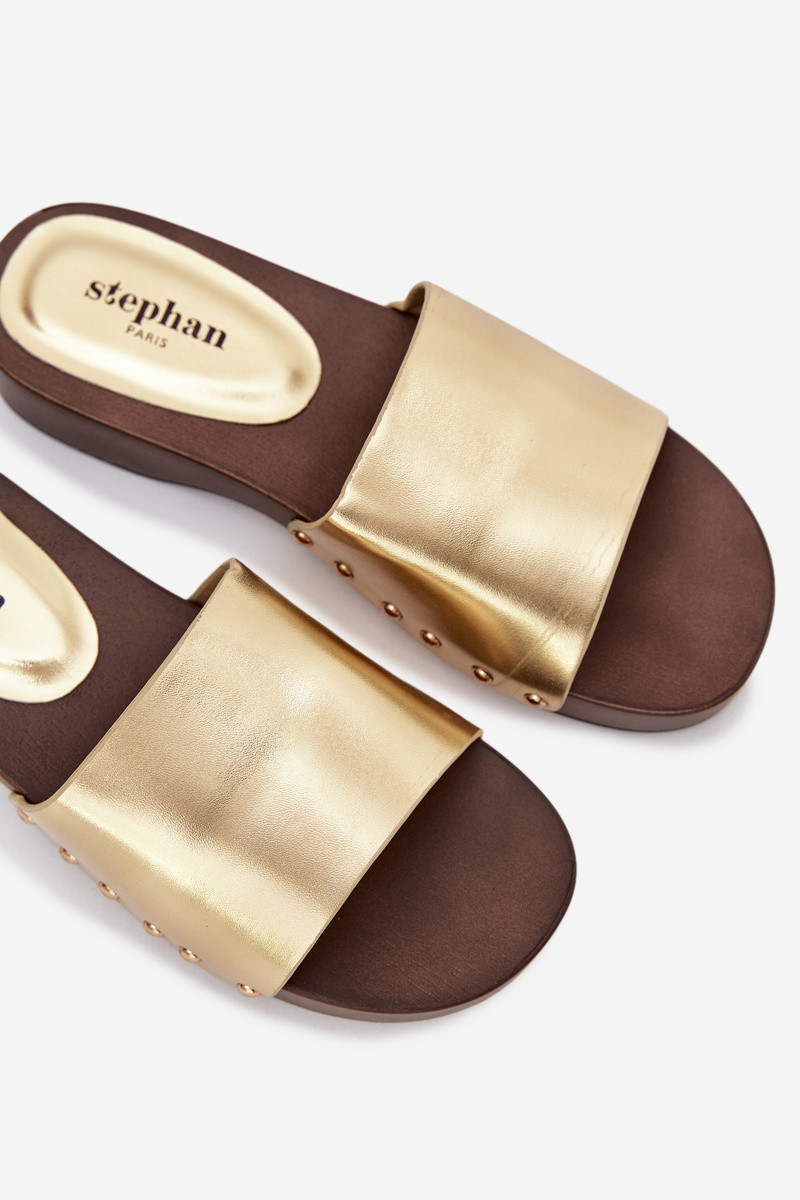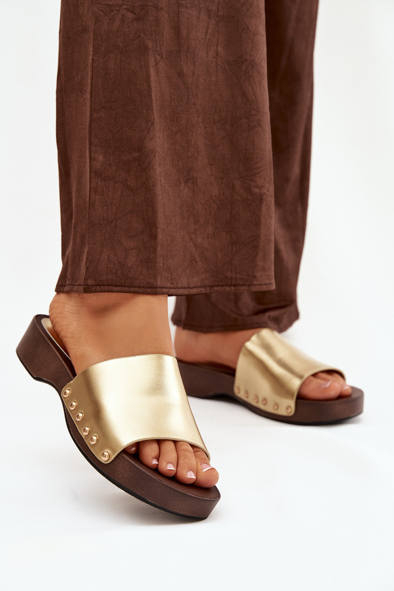 Damenhausschuhe mit Nieten goldene Farbe Terissa