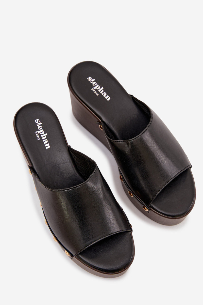 Damenhausschuhe Auf einem Keil mit Nieten schZuarze Farbe Es mussreline