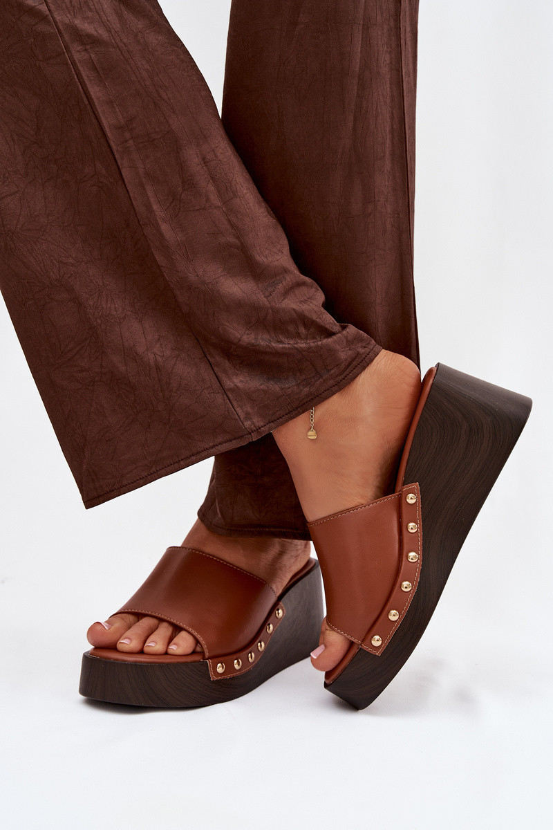 Damenhausschuhe Auf einem Keil Ze goldene Farbemi Stollen braune Farbe Arionne