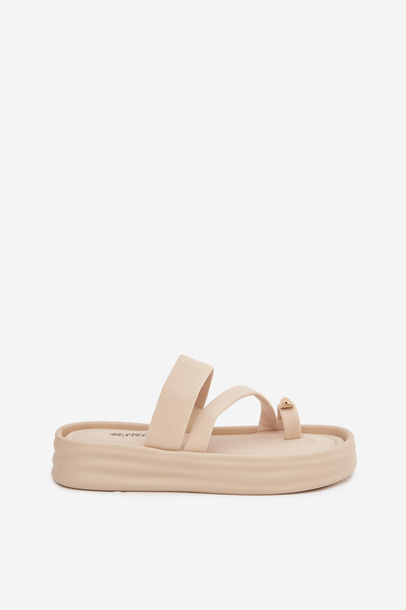 Damen elfenbeinfarbene Pantoletten mit Riemchen und goldfarbenen Details Farielle