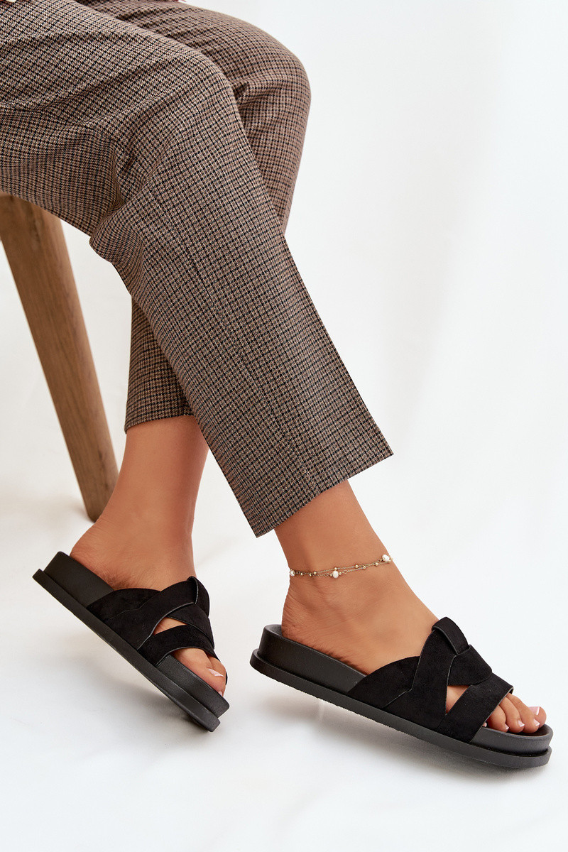 Damen schwarze Pantoletten aus Kunstwildleder mit Riemchen Tai turirivessa