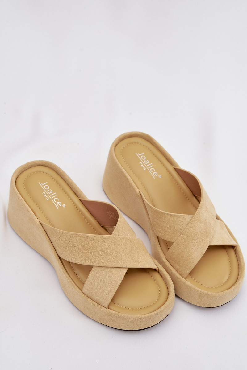 Damenhausschuhe Auf einem Keilaus Öko-INildlederu gelbe Farbe Calorine