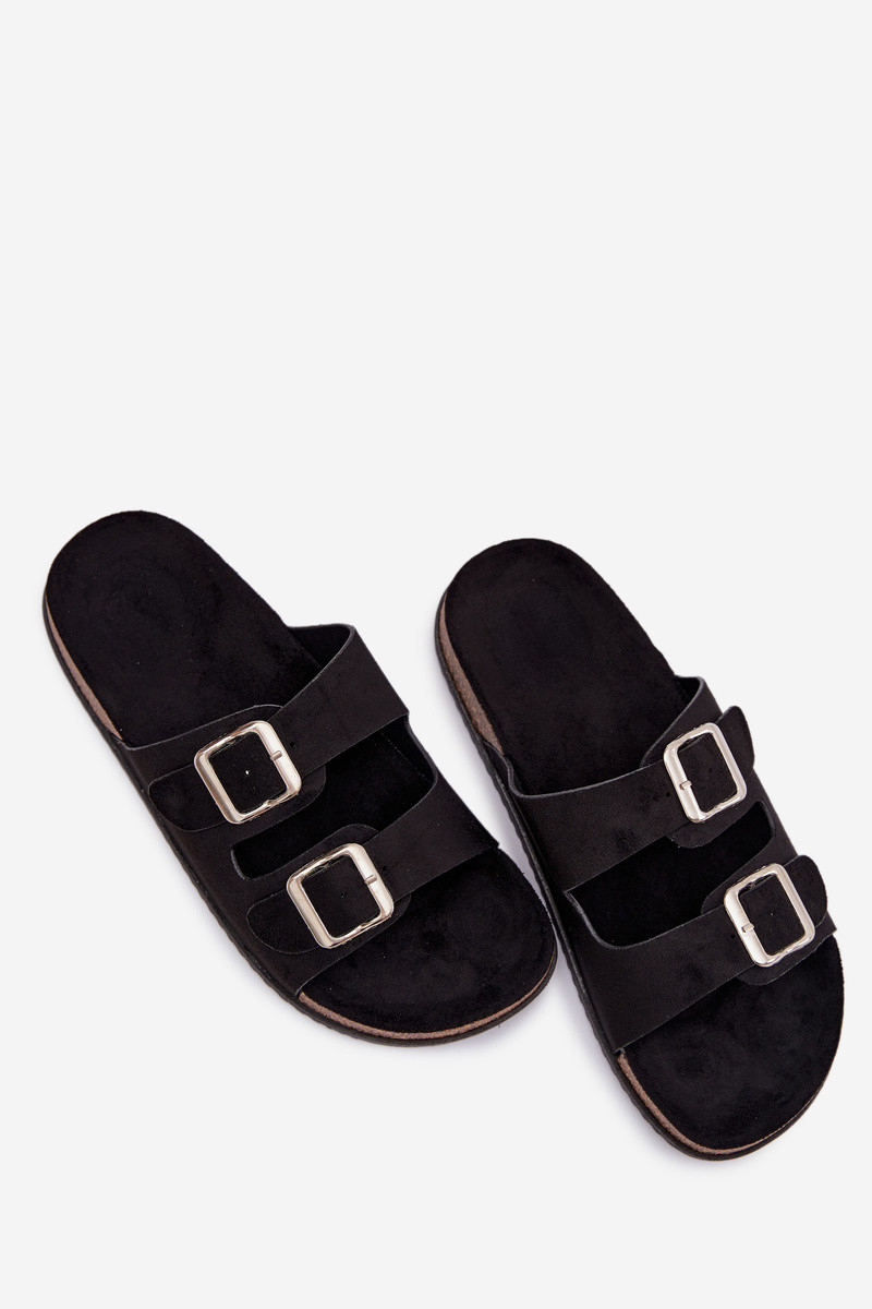 Damenhausschuhe mit Schnallen schZuarze Farbe Oliena