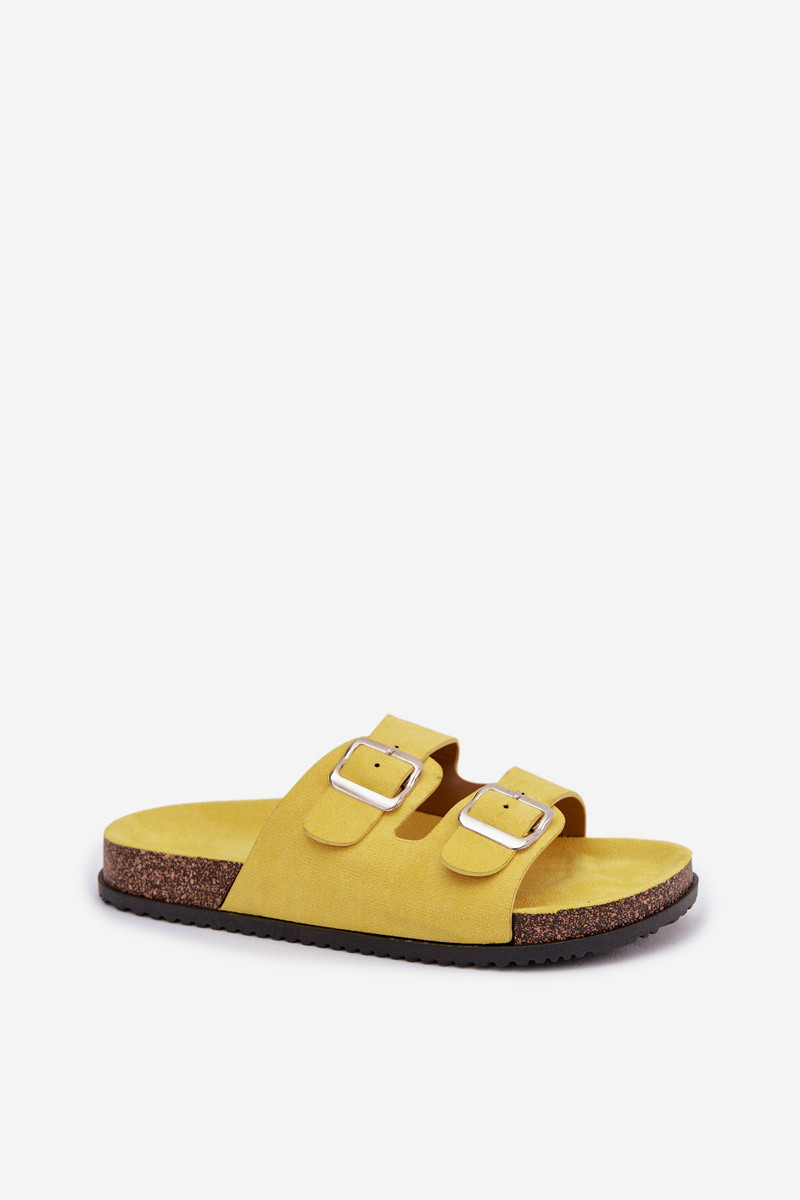 Damen gelbe Pantoletten mit Schnallen Oliena