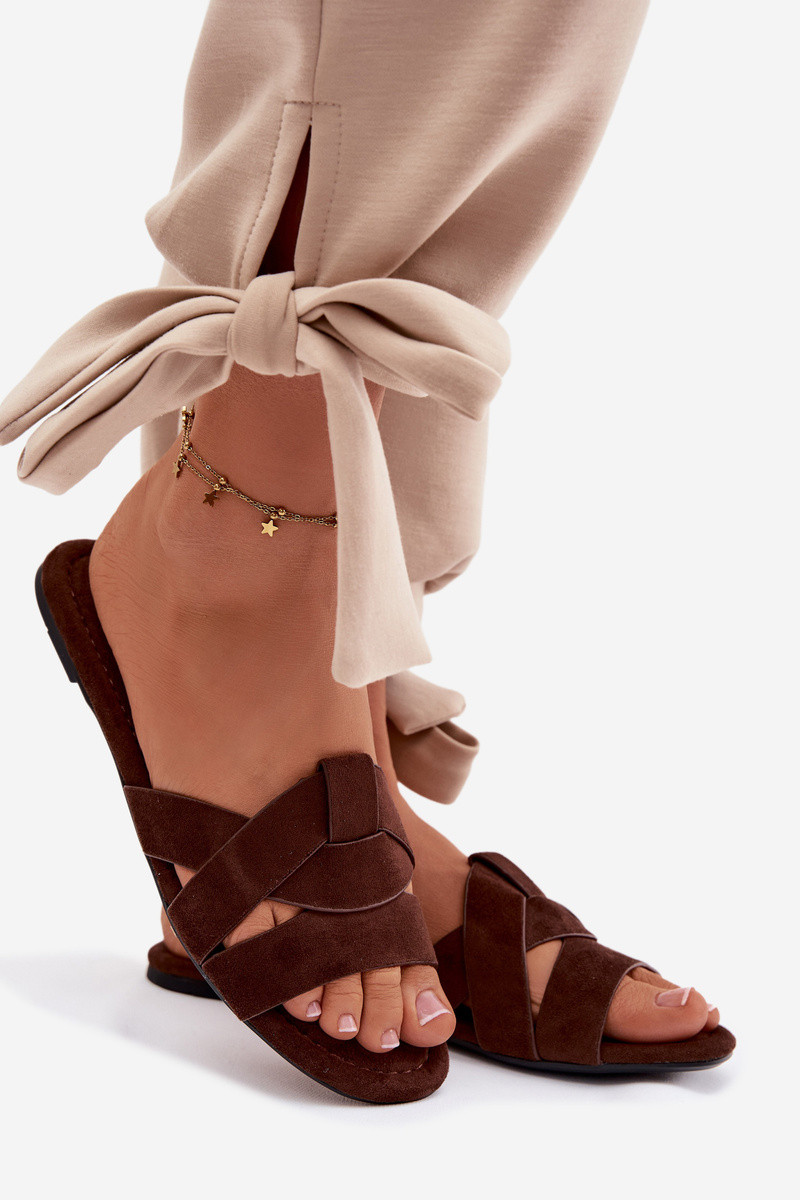 Pavelle Flache Damen Slipper mit Riemen in Schokoladenfarbe