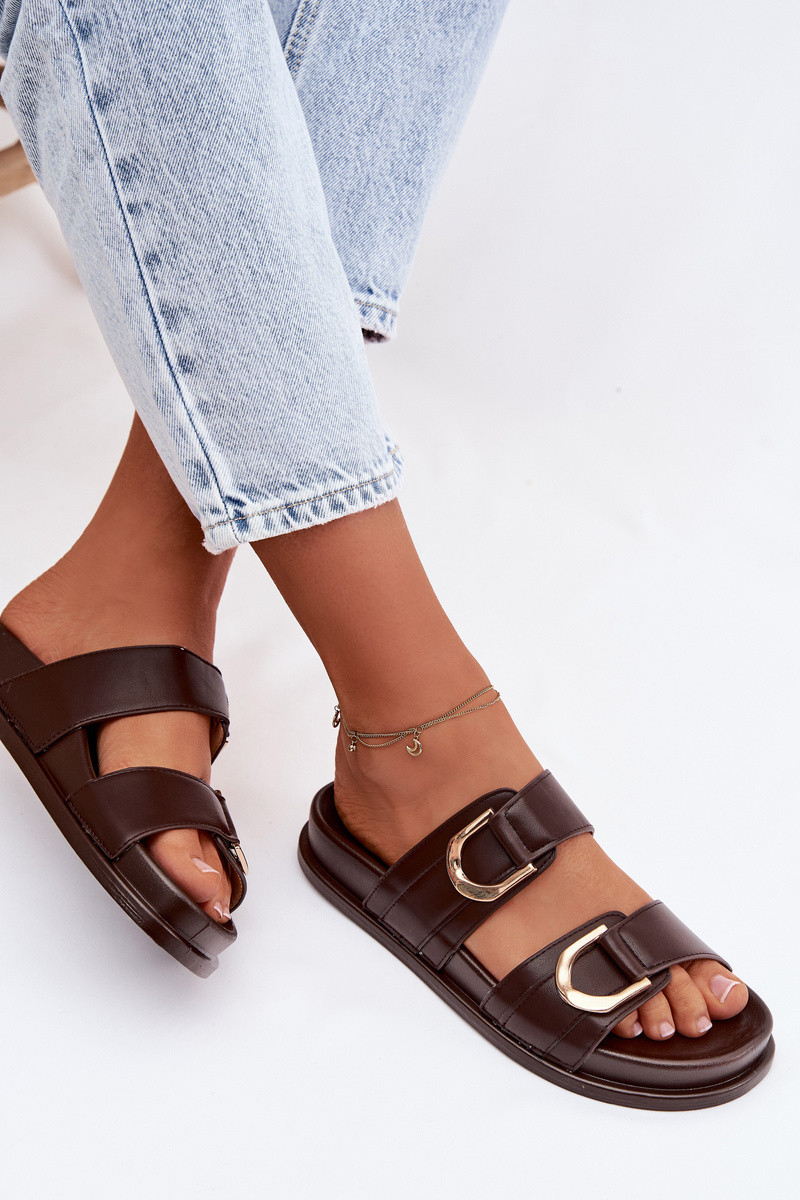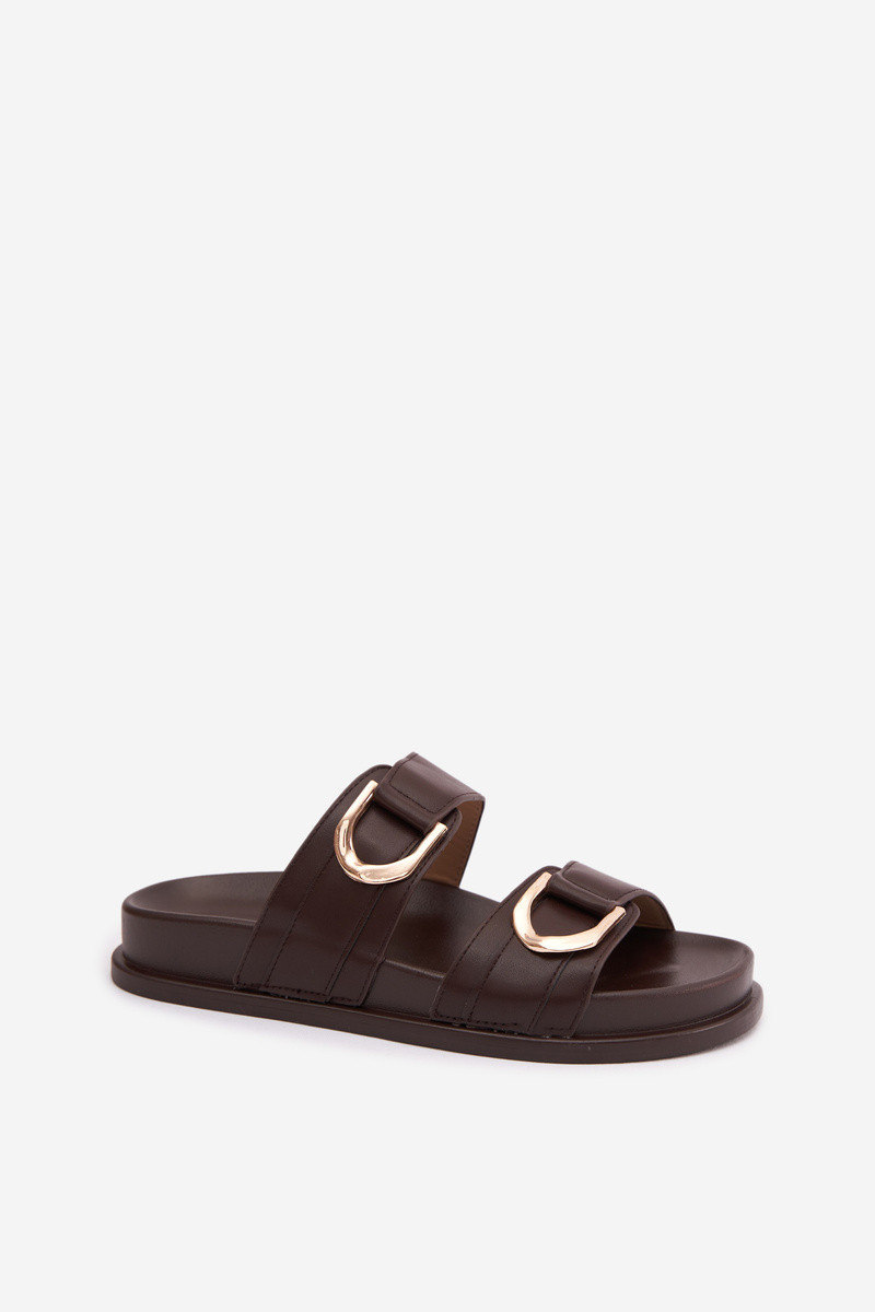 Damen Pantoffeln aus Kunstleder mit Riemchen in Schokolade „Rosinessa"